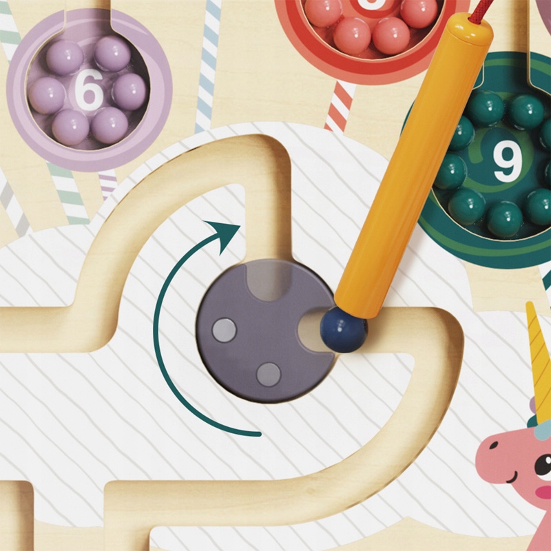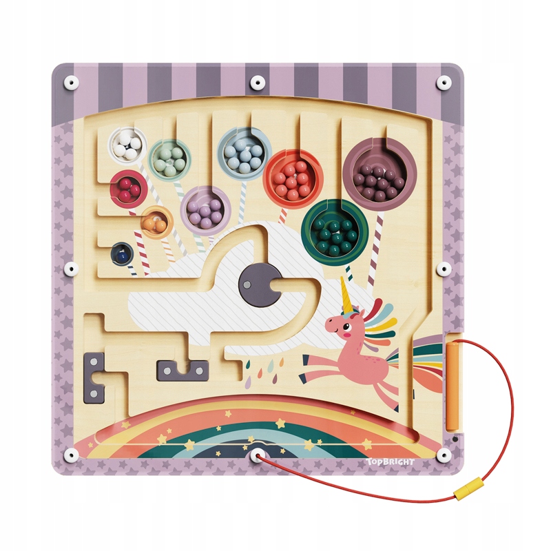 Układanka magnetyczna, która przeniesie dzieci w fantastyczny świat jednorożców. Za pomocą magnetycznego ołówka, dzieci prowadzą małe kolorowe koraliki przez cukierkowy świat aż finalnie tworzą z nich lizaki.