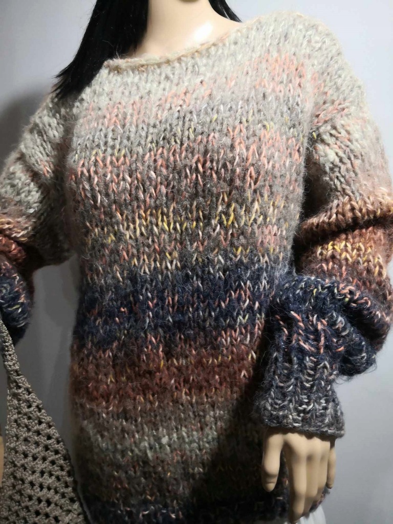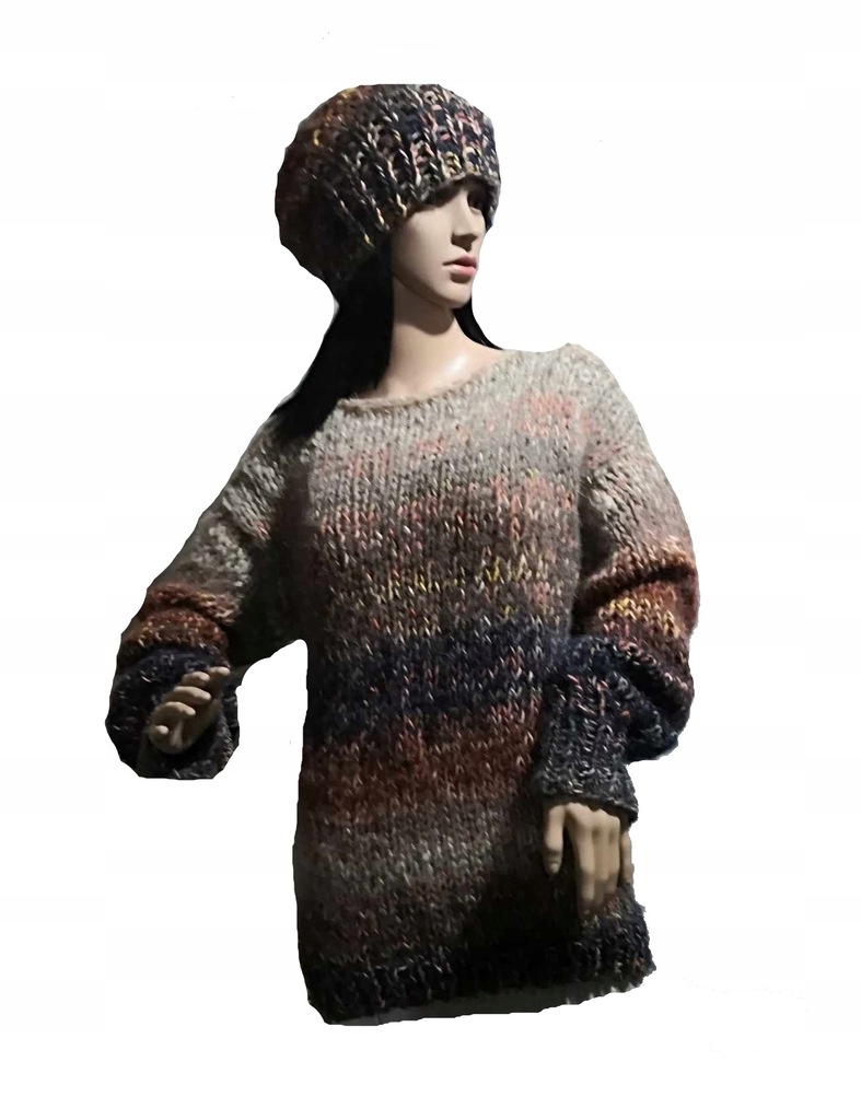 Śliczny, fantazyjny, unikatowy sweter w łódkę