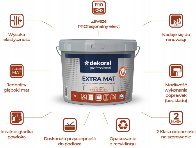 Farba nowej generacji z technologią gwarantującą jednolicie matowe wykończenie przy jednoczesnej możliwości wykonywania poprawek. Farba zaprojektowana z myślą o malowaniu szczególnie sufitów i innych niekorzystnie doświetlonych powierzchni, nienarażonych na intensywną eksploatację. Oparta na kombinacji najlepszych żywic oraz wypełniaczy, dzięki czemu uzyskana powłoka charakteryzuje się perfekcyjnym głębokim matem, który maskuje niedoskonałości powierzchni. Nadaje się do wszystkich podłoży budowlanych przeznaczonych do malowania takich jak: podłoża cementowo-wapienne, gipsowe, płyty gipsowo-kartonowe, tapety z włókna szklanego i inne. Farba o wysokiej odporności na szorowanie (klasa 2 wg EN 13320).