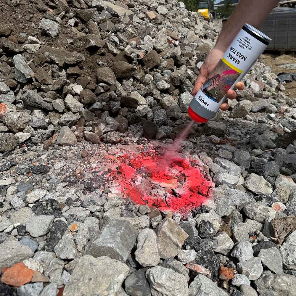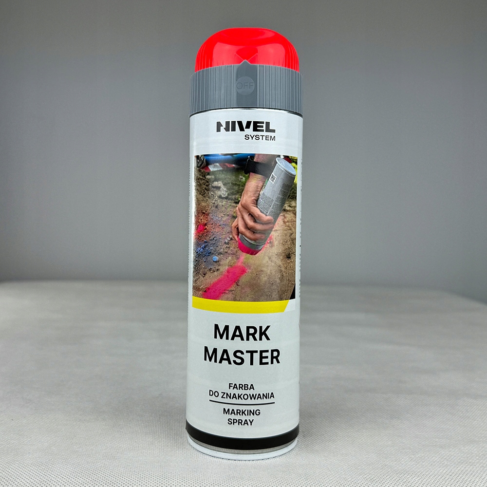 Spray Mark Master marki Nivel System to wysokiej jakości farba fluorescencyjna w sprayu, idealna do oznaczania na placach budowy oraz podczas prac geodezyjnych i pomiarowych. Dzięki niej można wykonać doskonale widoczne, odblaskowe oznaczenia, wyznaczać na budowie zarys wykopów lub oznaczać wykonane pomiary geodezyjne. Korzystanie z farby Mark Master znacząco usprawnia pracę, gwarantuje doskonale widoczne, długotrwałe oznaczenie pomiarów a wszystko to przy minimalnych kosztach.