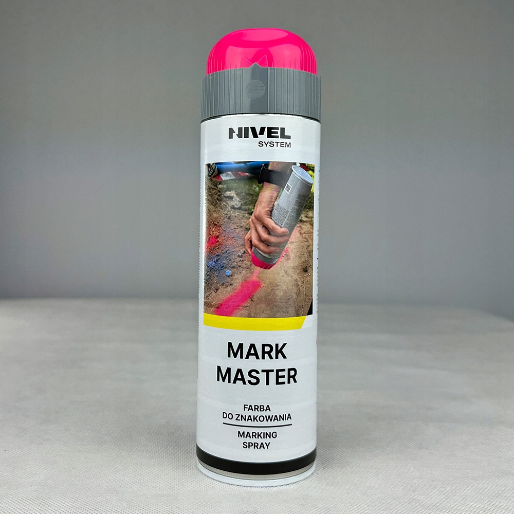 Spray Mark Master marki Nivel System to wysokiej jakości farba fluorescencyjna w sprayu, idealna do oznaczania na placach budowy oraz podczas prac geodezyjnych i pomiarowych. Dzięki niej można wykonać doskonale widoczne, odblaskowe oznaczenia, wyznaczać na budowie zarys wykopów lub oznaczać wykonane pomiary geodezyjne. Korzystanie z farby Mark Master znacząco usprawnia pracę, gwarantuje doskonale widoczne, długotrwałe oznaczenie pomiarów a wszystko to przy minimalnych kosztach.