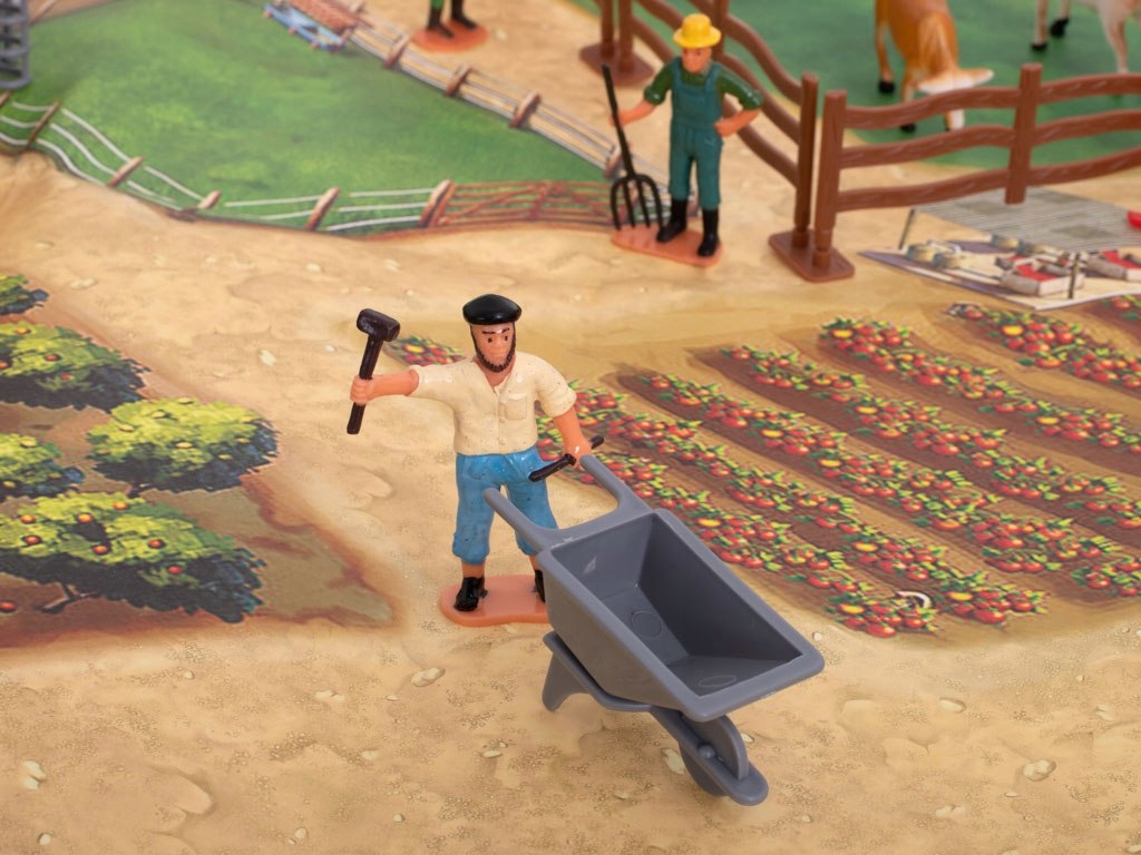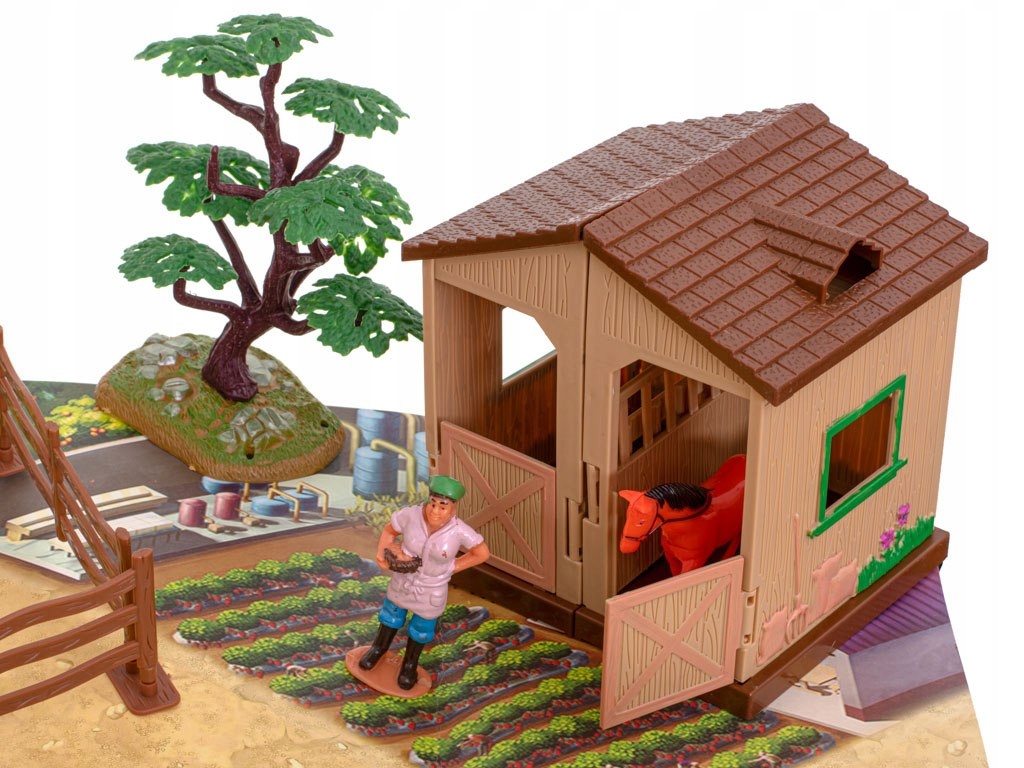 Ta zabawka pozwoli dziecku lepiej poznać realia życia na wsi. Zestaw rozwija wyobraźnię i kreatywne myślenie. Konstrukcja planszy umożliwia ustawienie zabudowań gospodarczych według wizji małego budowniczego. Wszystkie elementy zostały dostosowane do małych rączek, więc dziecko bez problemu „przebuduje” swoje podwórko.