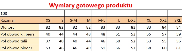 - Rozmiary: XXS, XS, S, S-M, M, M-L, L, L-XL, XL, XXL, 3XL, 4XL, 5XL, 46, s