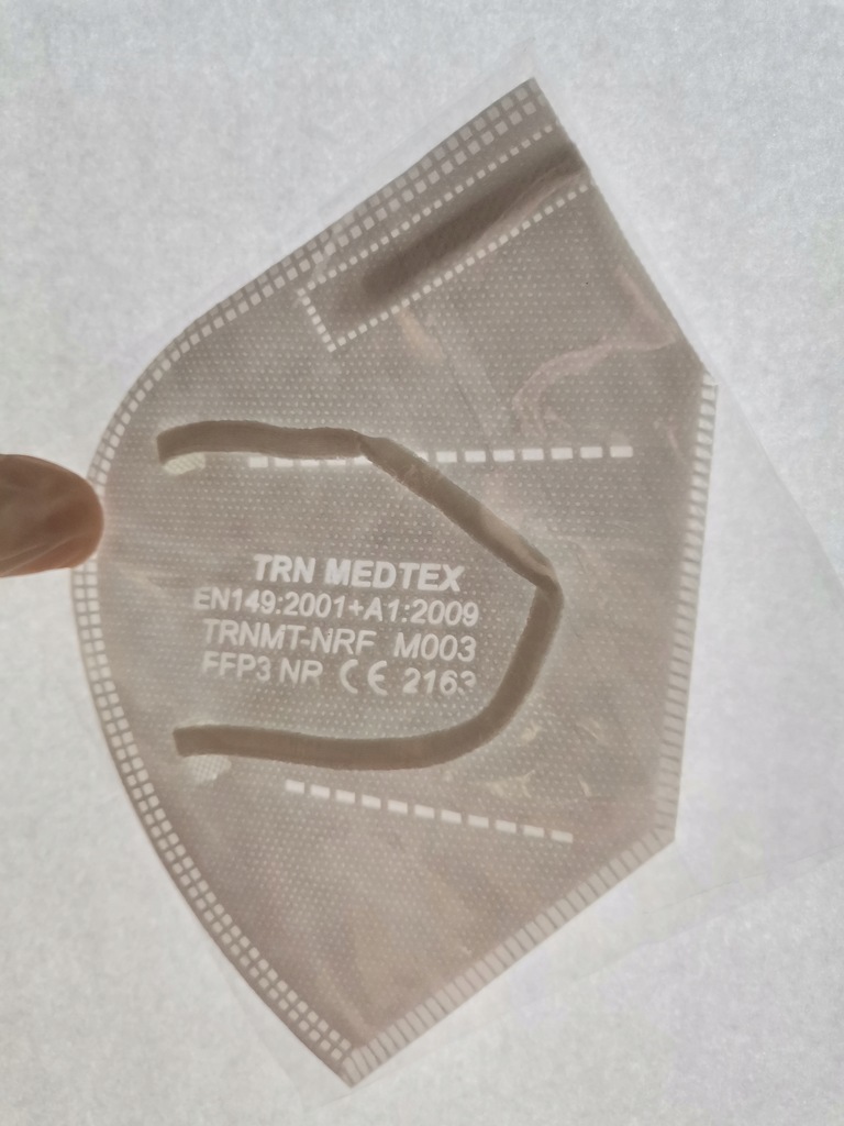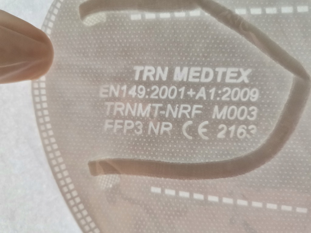 ✅Każda z masek posiada wytłoczony napis potwierdzający jej właściwości opisane w certyfikacie