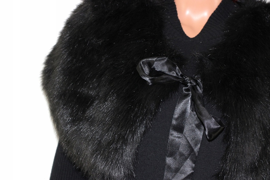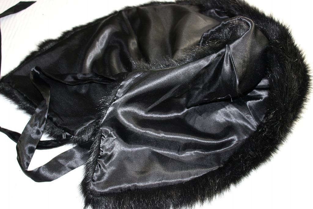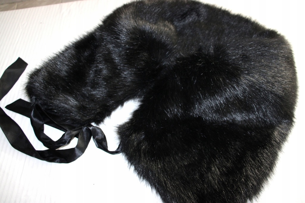elegancki futrzany szal/etola/kołnierz - w kolorze czarnym, na satynowej podszewce, zaokrąglony krój, etola jest duża i wiązana