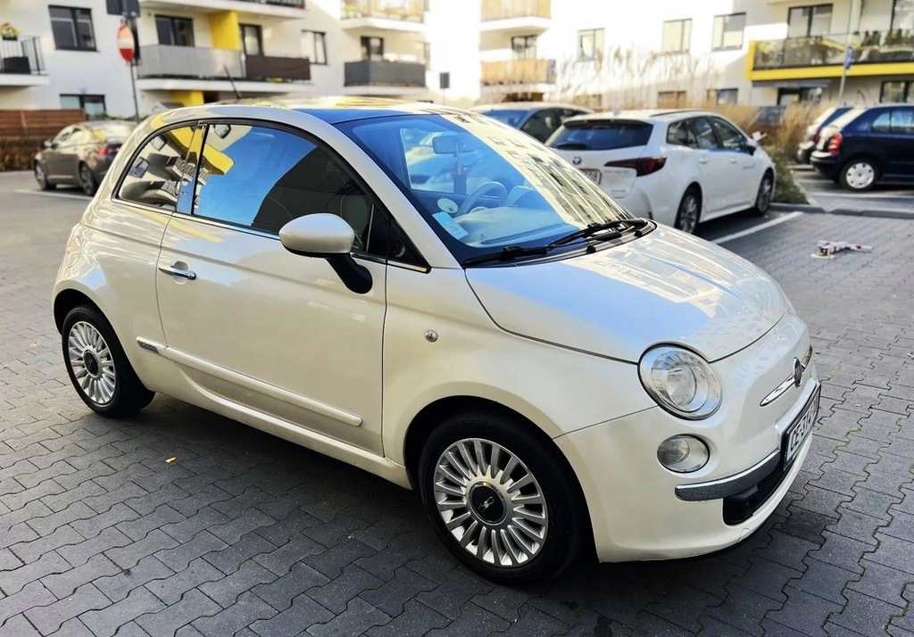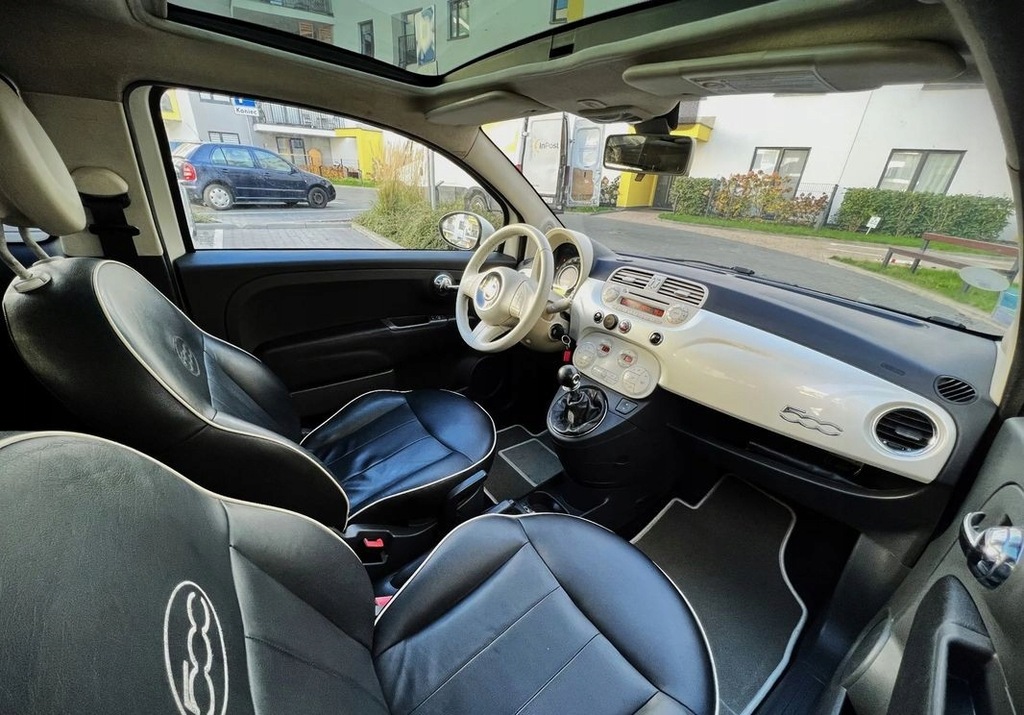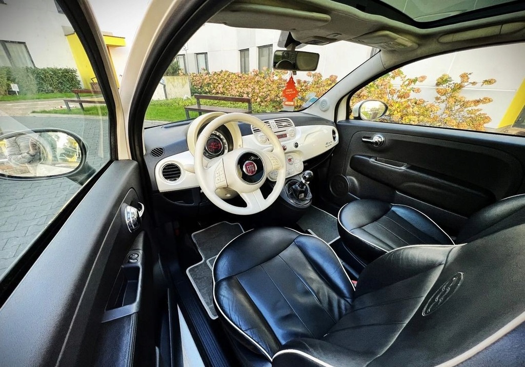 Sprzedam przepiękne auto Fiat 500 w bogatej wersji wyposażenia Lounge kolor BIAŁA PERŁA z 2009 roku z niskim przebiegiem 170 tys. km. Auto z manualną skrzynią biegów i bezawaryjnym silnikiem 1.2 o mocy 69 KM, suchy, bez wycieków. Posiada piękne wnętrze! Skórzana tapicerka! Nie wymaga absolutnie żadnego wkładu finansowego, można wsiadać i jeździć. Auto naprawdę godne polecenia. Jest zadbane, czyste i wypielęgnowane. Typowe oczko w głowie właściciela!
