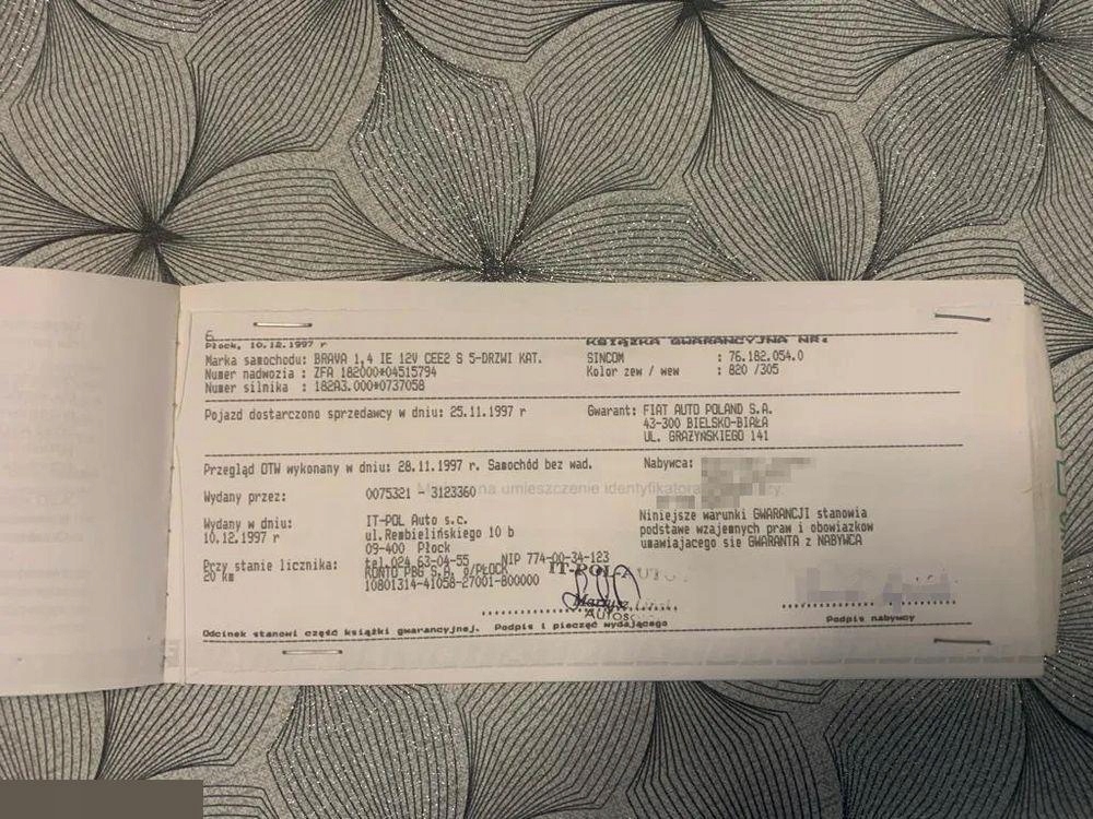 Fiat Brava 1.4 12v SX 1997r Pierwszy właściciel BEZWYPADKOWY Salon Polska Radio Zadbany Cena 4 400 PLN Do negocjacji