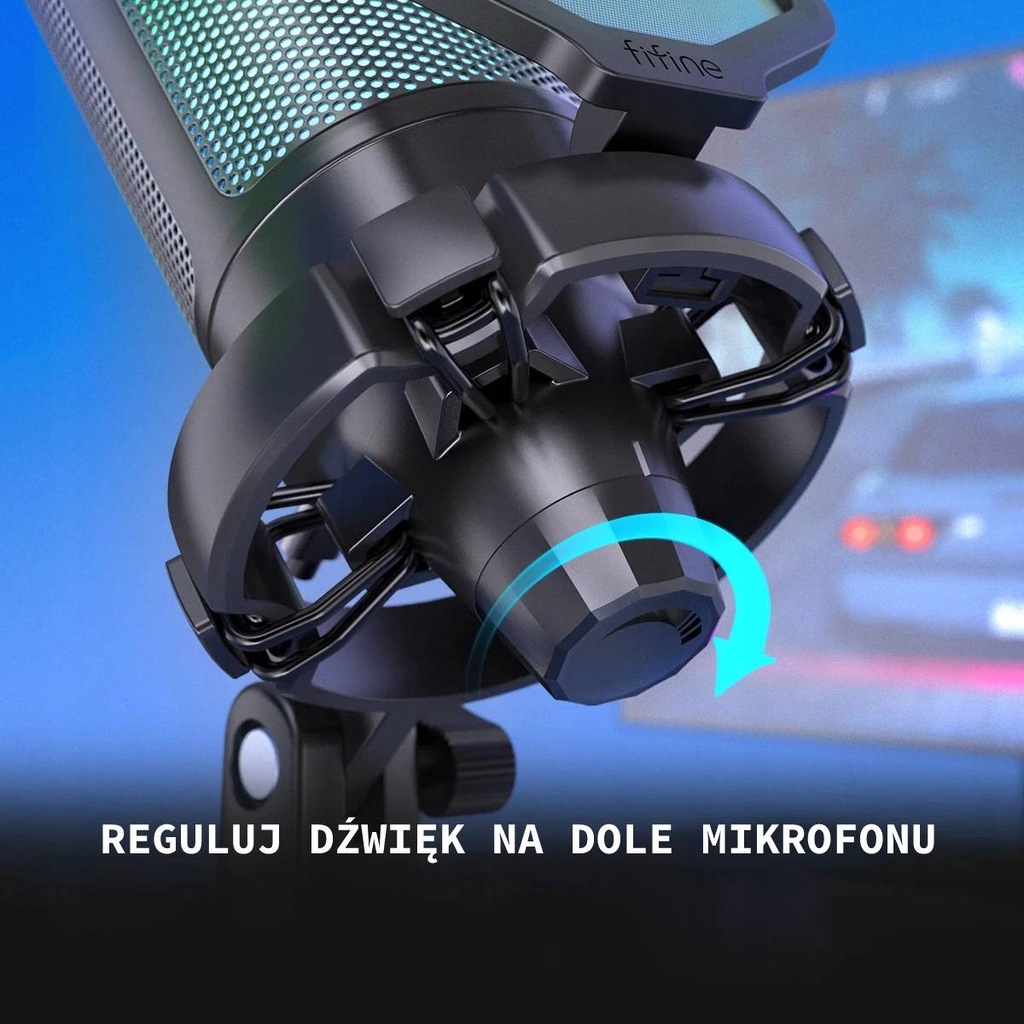 FIFINE ampligame mikrofon USB do strumieniowego przesyłania gier z filtr Pop Shock Mount & Gain Control, mikrofon pojemnościowy do laptopa/komputera