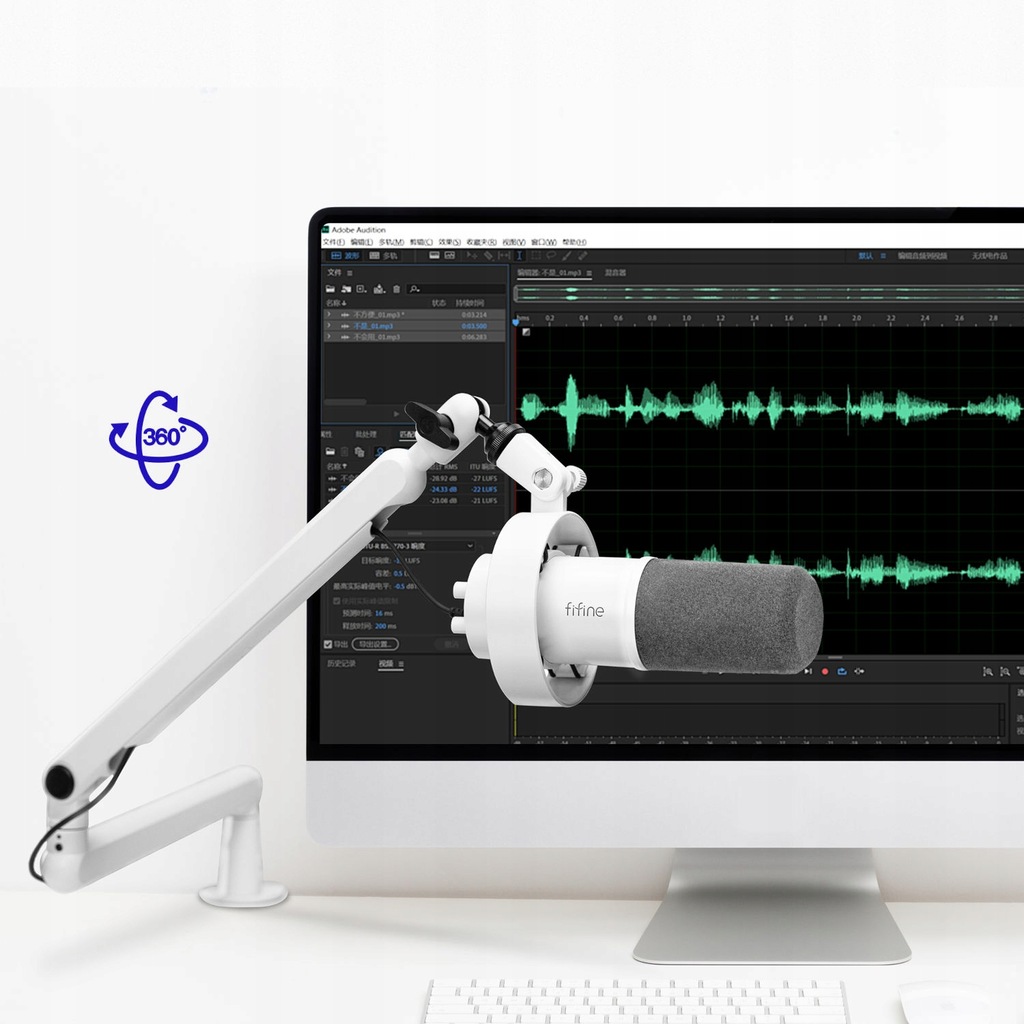 Jeżeli posiadasz własny interfejs audio lub potrzebujesz większej swobody w parametryzacji audio, podłącz mikrofon K688 za pomocą swojego DAC’a przewodem XLR. Dynamiczny mikrofon do podcastów z SPL 130dB, nie zniekształci dźwięku z nagrań wokalnych, wideo lub muzycznych zachowując jego najwyższą wierność. To, czego naprawdę potrzebujesz, to dynamiczna kardioidalna kapsuła która pozwala K688 błyszczeć. W nieprzystosowanych pomieszczeniach mikrofon dynamiczny będzie bardzo pomocny, ponieważ minimalizuje odgłosy tła oraz odbitego dźwięku. W zestawie znajduje się mikrofon, przewód USB, statyw Fifine BM88 oraz kosz antywibracyjny. Inne elementy mają ukazać jedynie przykładowe zastosowanie.