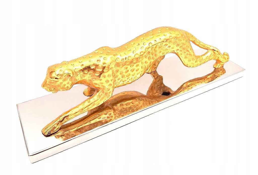 Złota figurka lamparta to idealny dodatek do wnętrz urządzonych w stylu glamour.. To doskonały pomysł na prezent dla miłośników zwierząt oraz luksusowych elementów dekoracyjnych. Wymiary: 42 x 11,5 x 10 cm.