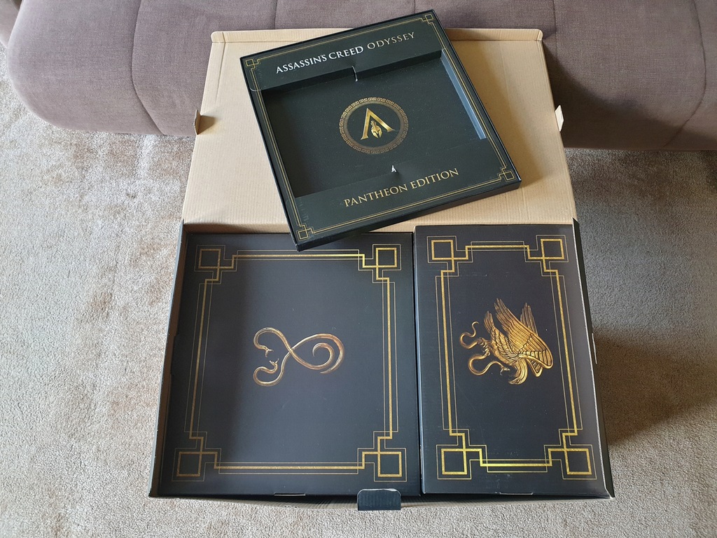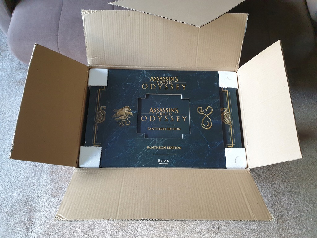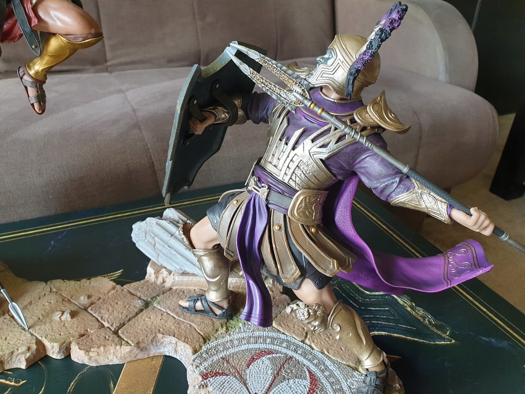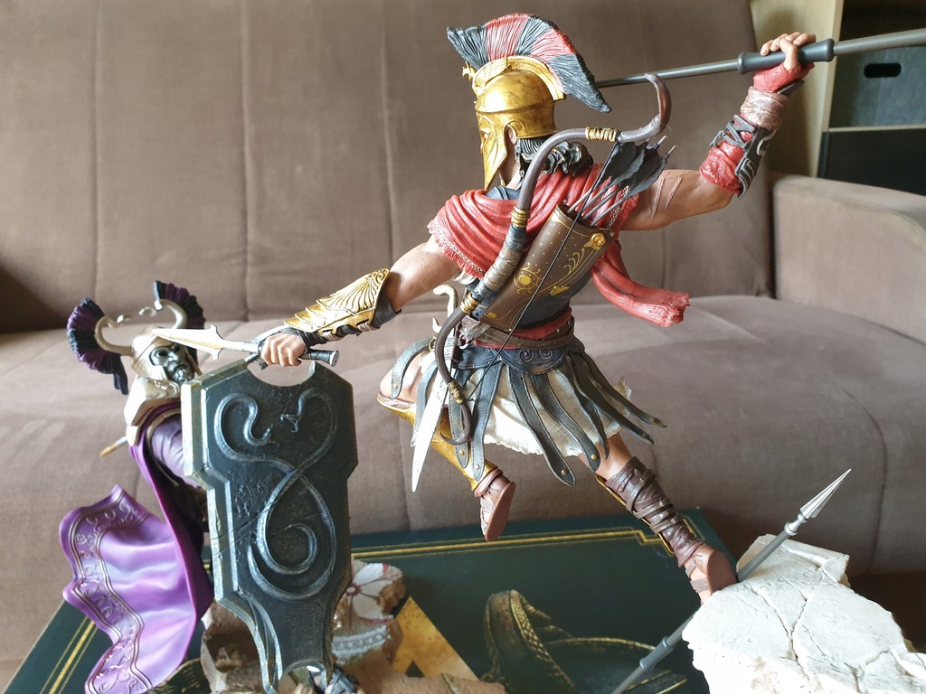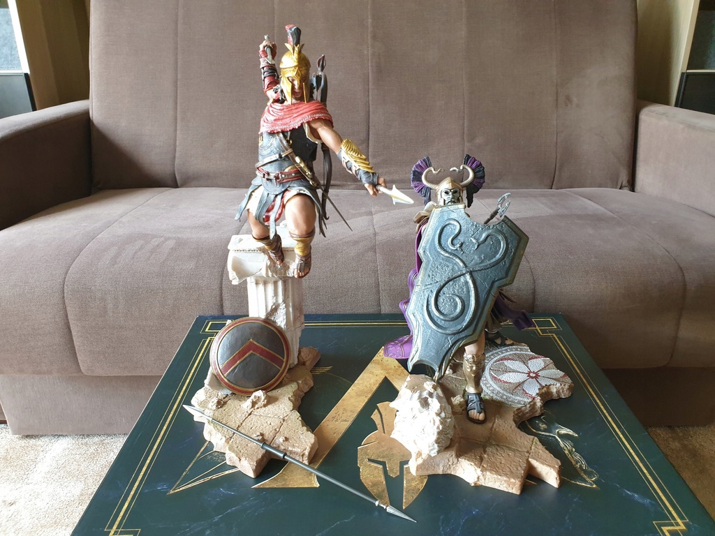Przedmiotem aukcji są figurki z edycji kolekcjonerskiej Assassin's Creed Odyssey Pantheon Edition. Figurki tworzą dioramę ale można ustawić je osobno wedle uznania. Figurkę Alexios'a można wymienić na figurkę Kassandr'y (zdjęcie).