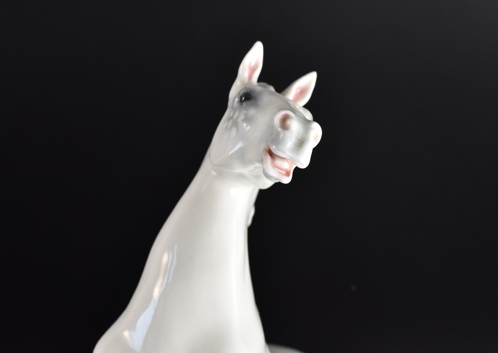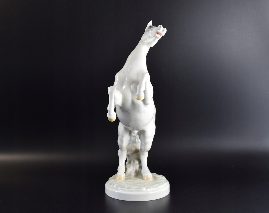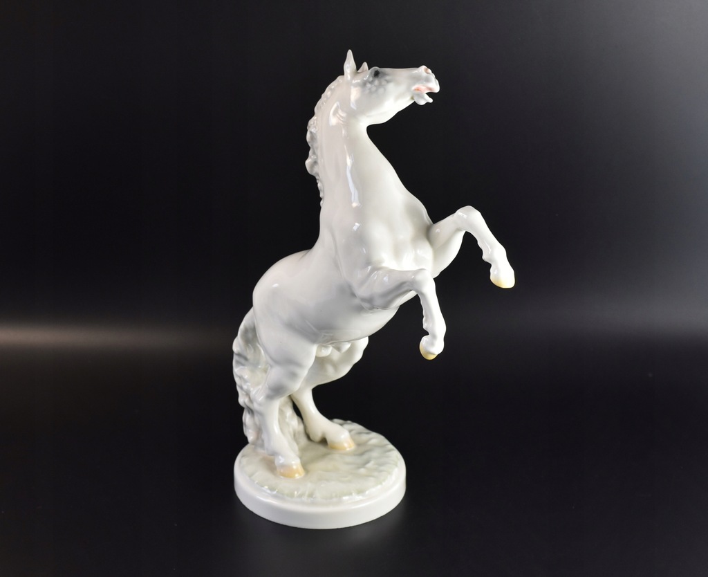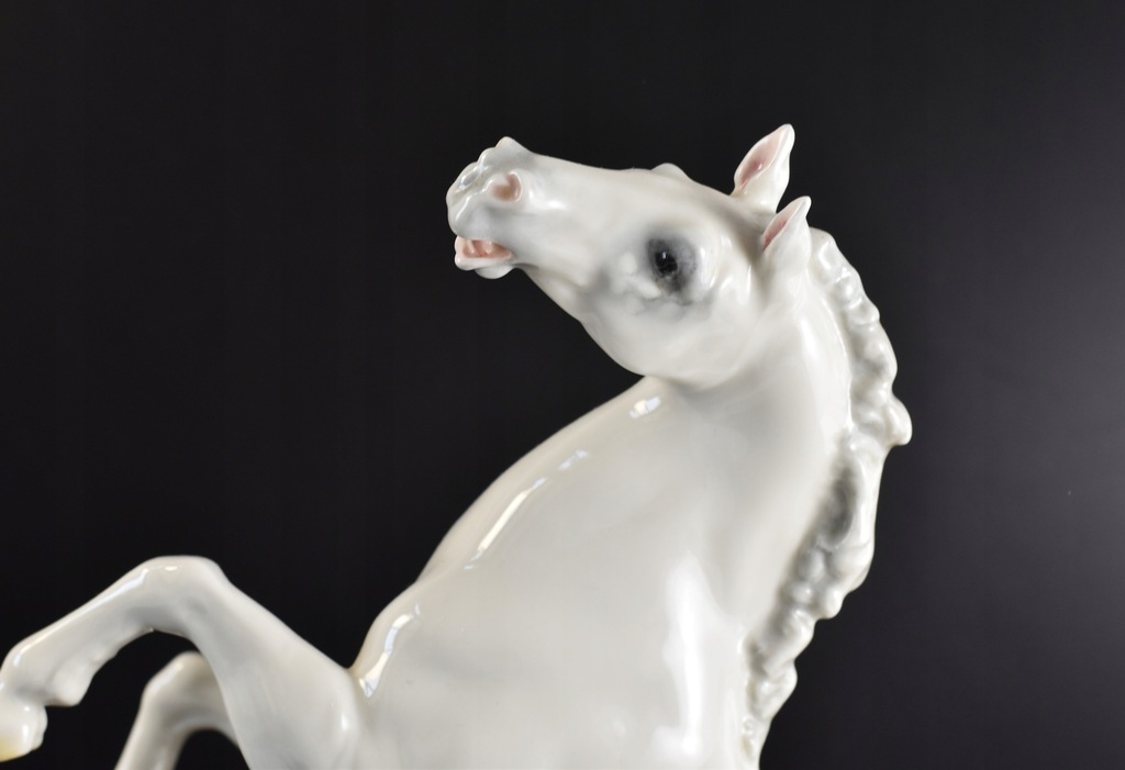 Okazała, pięknie rzeźbiona figurka przedstawiająca konia stojącego dęba.