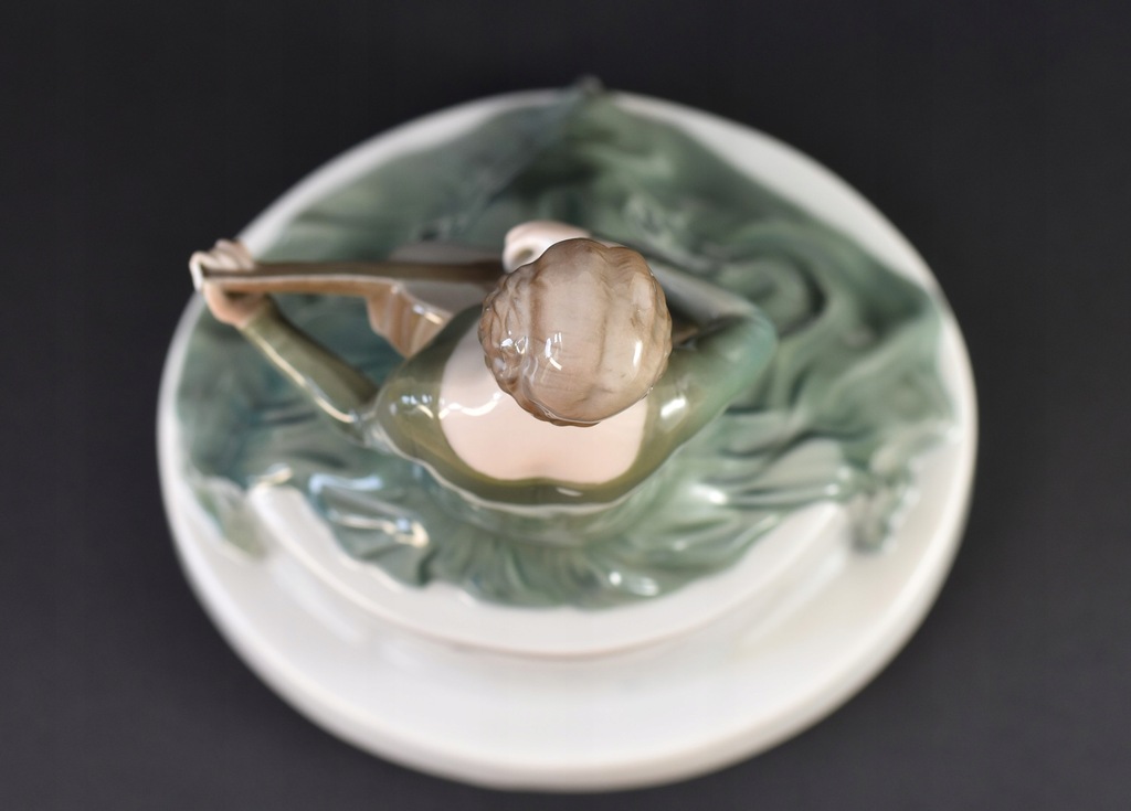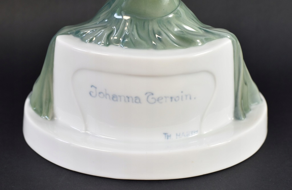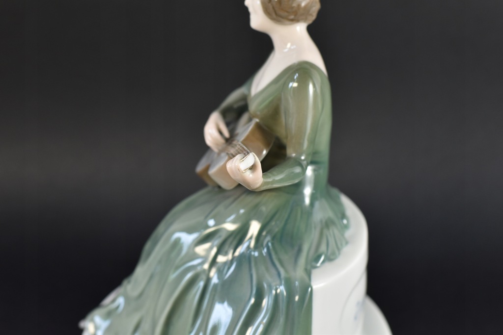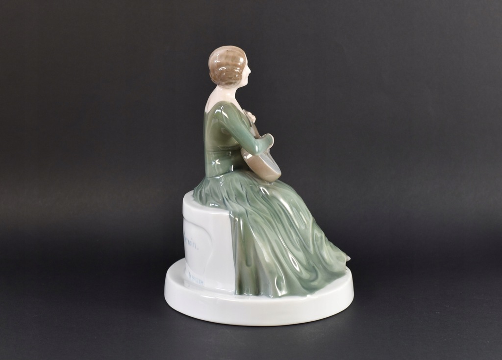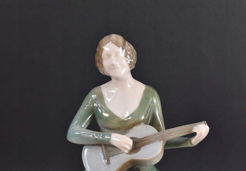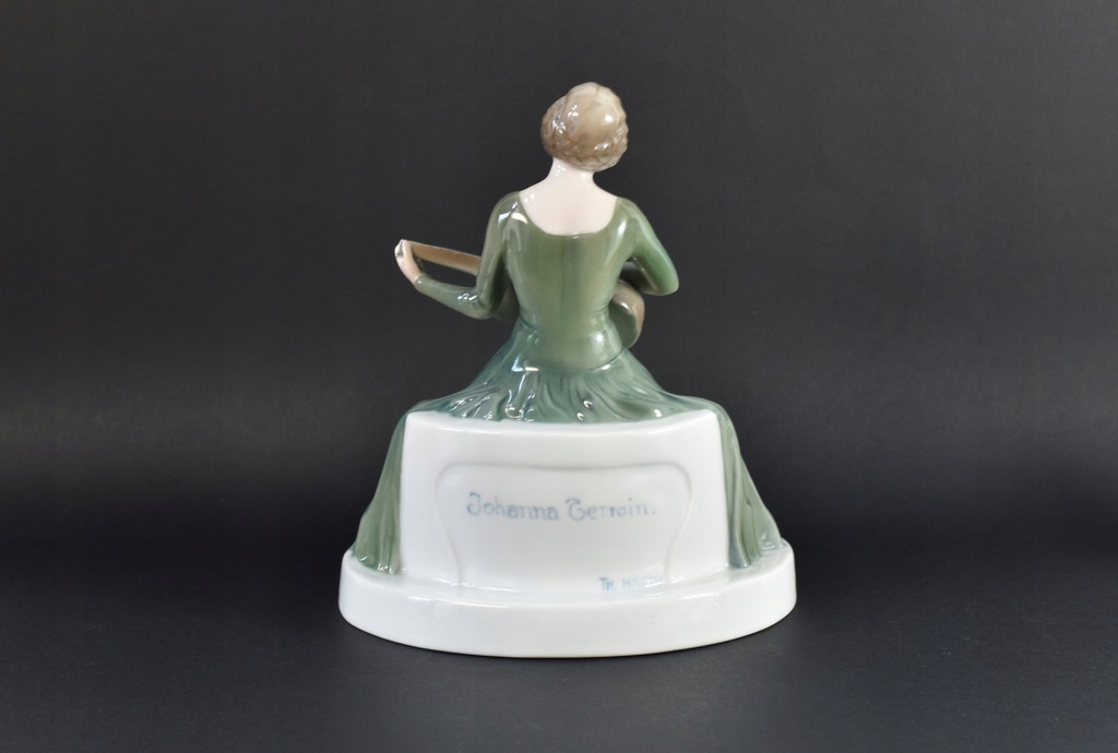 Figurka porcelanowa z manufaktury Rosenthal przedstawiająca Johannę Terwin grającą na gitarze. Terwin była niemiecką aktorką filmową i teatralną, żyła w latach 1884 - 1962. Figurka jest zaprojektowana przez Theklę Harth-Altmann (pracowała dla Rosenthal w latach 1913-23).