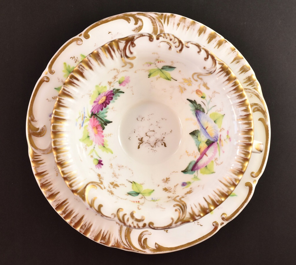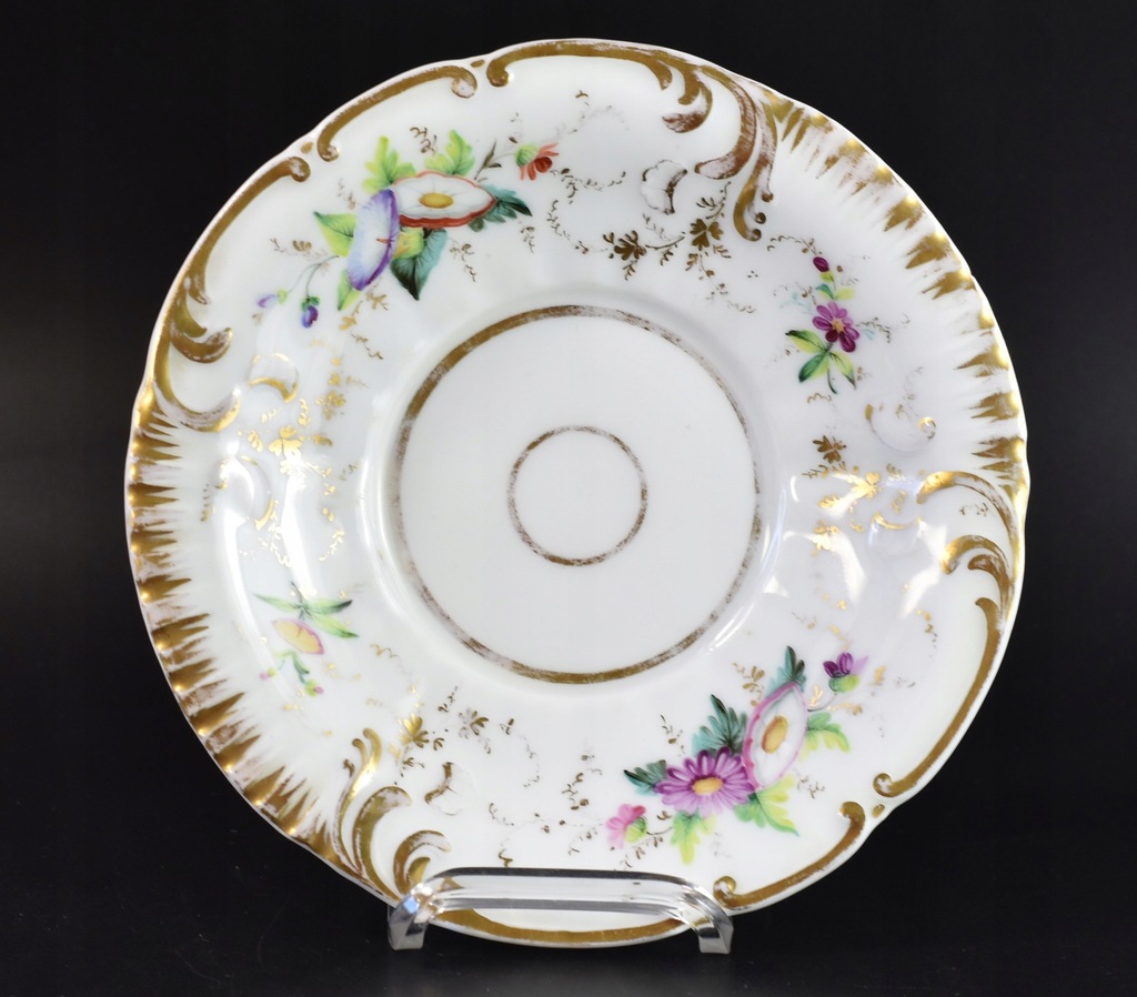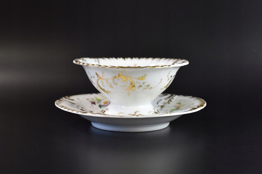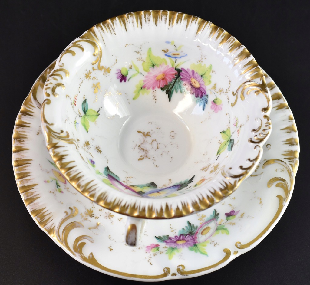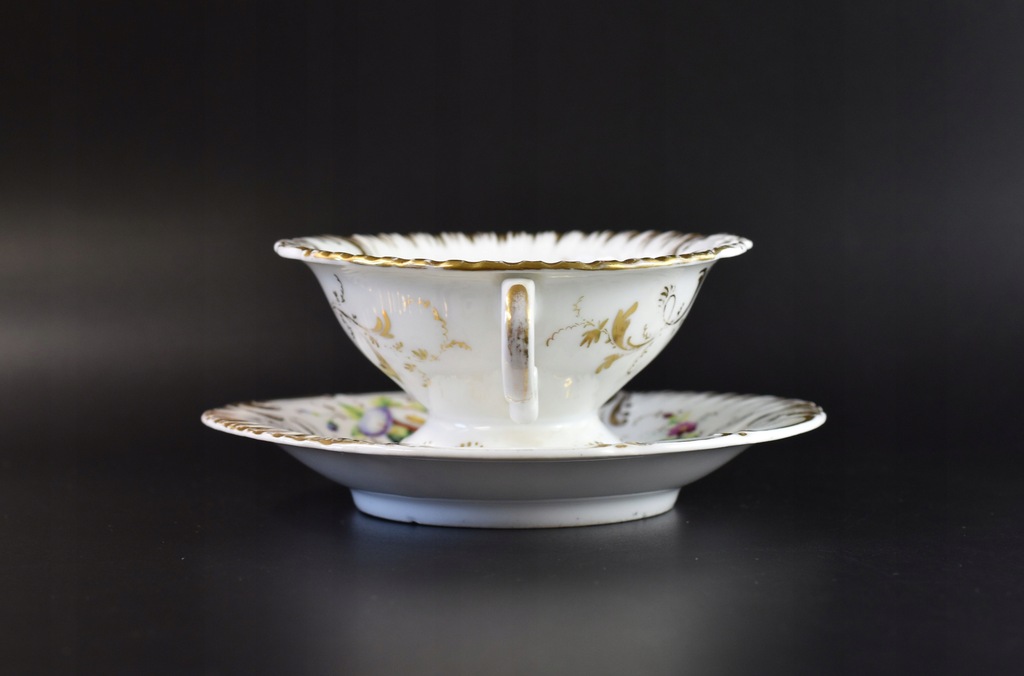 Dziewiętnastowieczna filiżanka ze spodkiem z dawnej Bohemii. Porcelana wyprodukowana została w manufakturze Fischer & Reichenbach, która znajdowała się w miejscowości Pirkenhammer (dzisiejsze Czechy).