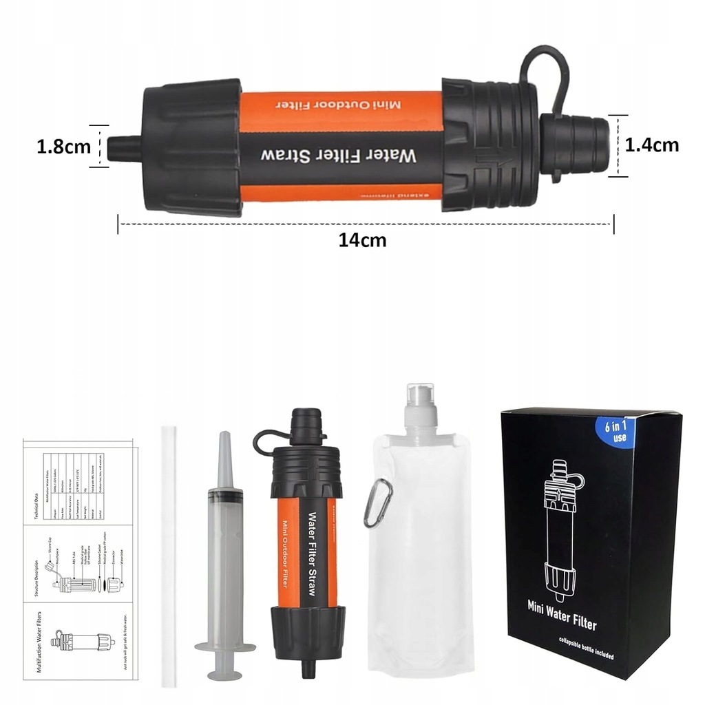 - ✅Skuteczna filtracja - filtr usuwa 99.9999% najmniejszych cząstek i zanieczyszczeń z wody, zapewniając czystą i bezpieczną wodę pitną w podróży.
