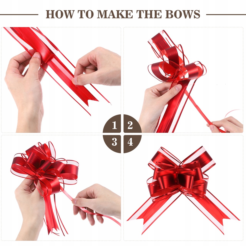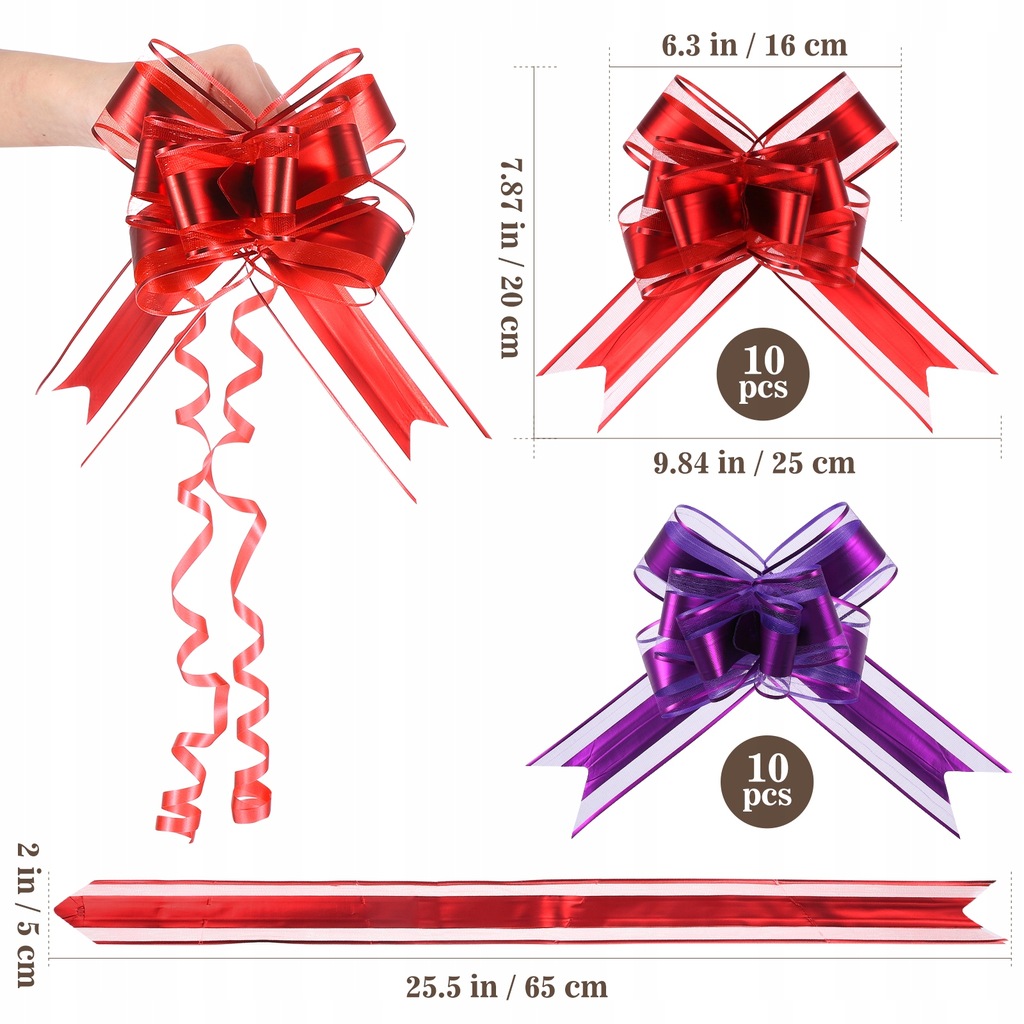 Można go przyciąć na dowolną długość, aby spełnić Twoje wymagania, wyposażony w 10 sztuk czerwonych wstążek w kształcie kwiatów i 10 fioletowych wstążek w kształcie kwiatów, aby uzyskać więcej owijania w krótszym czasie!
