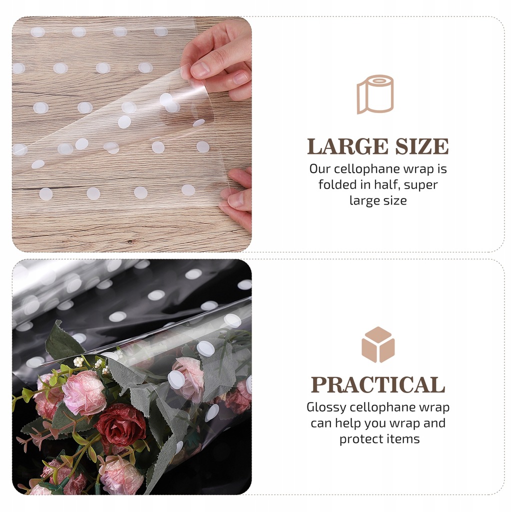Nasza celofanowa rolka do pakowania jest idealna na każdą okazję, aby upiększyć każdy prezent, grubość 3 mil zapewnia lepszą trwałość niż inne opcje rynkowe o grubości 1 mil. Z wzorem w białe kropki, wyjątkowym i świątecznym. Użyj go do pakowania koszy, celofanowych toreb na prezenty, pudełek, ramek do zdjęć, butelek, kompozycji kwiatowych, ciasteczek, cukierków, sztuki i rzemiosła i wielu innych.