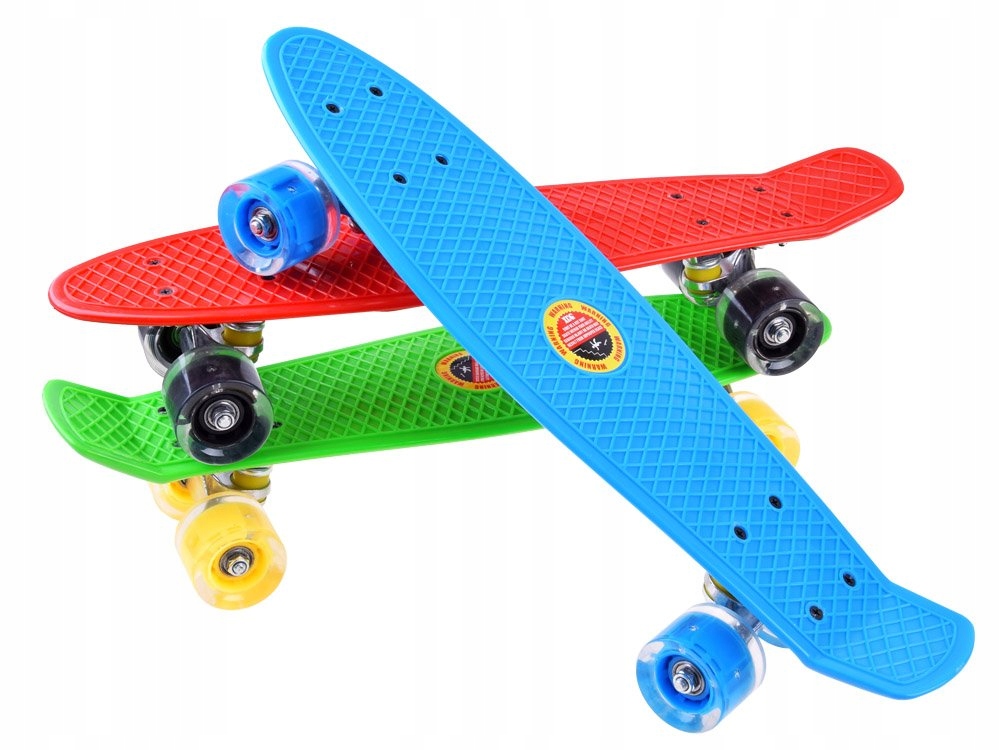 Deskorolka fiszka ze świecącymi kołami świetnie się sprawdza na spacerach, wyprawach na plac zabaw czy w podróżach wakacyjnych na miejskich deptakach.Do zabawy na deskorolce zaleca się używanie kasku oraz ochraniaczy na nadgarstki, łokcie i kolana (dostępne także w ofercie u Jokomisiada).