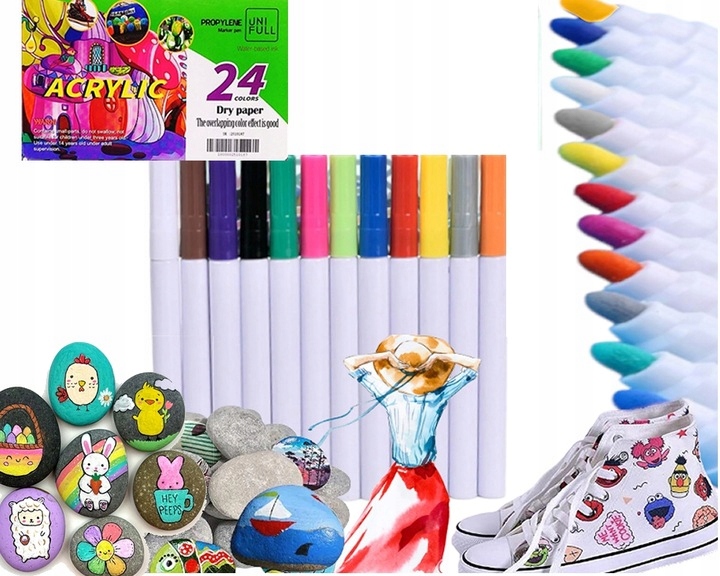- Zestaw markerów akrylowych 24 sztuki w bogatych kolorach i posiadające wysoce pigmentowane i bezrozpuszczalnikowe farby akrylowe. Pisz płynnie i przesuwaj się po stronie bez przerw i pęcherzyków powietrza w tuszu. Dzięki temu wodoodpornemu zestawowi możesz rysować i pisać bez ograniczeń oraz doświadczyć radości płynnego i nieprzerwanego pisania.