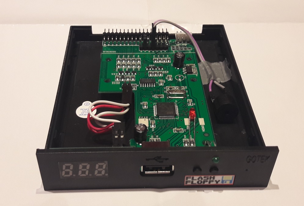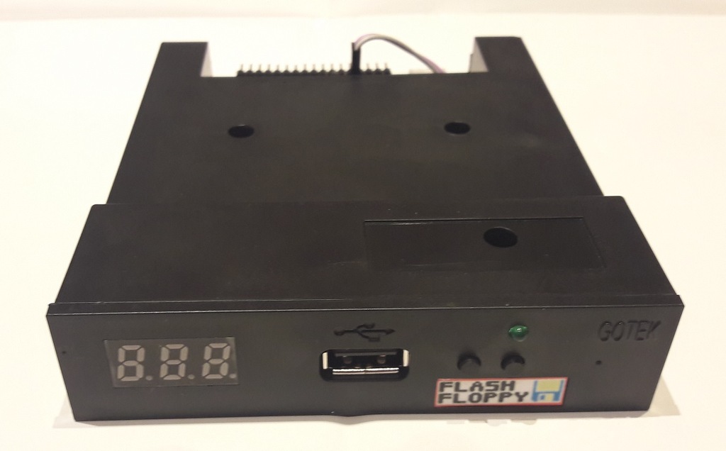 Na sprzedaż mam nowego (w sensie nie używanego) Gotka z własnego zapasu, który został przeze mnie przerobiony do bardziej wypasionej wersji, niż inne standardowe Gotki. Dla lepszego realizmu dołożyłem wew. buzzera (widać na jednym ze zdjęć) i nasz Gotek wydaje również dźwięki, no może raczej piski, ale spełnia to swoją rolę i brzmi jak rasowa stacja dyskietek. Podczas odczytu zachowuje się jak by czytał naprawdę z dyskietek. Bardzo fajna sprawa. Gotek ma wgrany najnowszy firmware FlashFloppy w wersji 0.9.6a. Firmware można samemu aktualizować z Pendrive`a, instrukcja na stronie projektu FF. Jeżeli ktoś nie zna, jest to darmowe oprogramowanie, kompatybilne z HxC i ciągle rozwijane. Może używać zarówno narzędzi z HxC jak i konfiguracji. Można używać selektora z HxC. Na dwóch ostatnich zdjęciach widać jak Gotek jest używany z Amstradem 6128 i korzysta z aplikacji HxC, która go ładnie wykrywa i z nim działa jak oryginalny HxC.