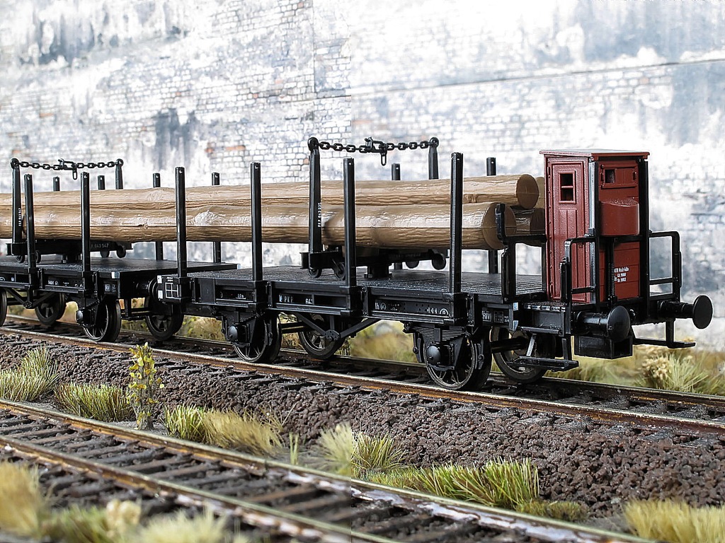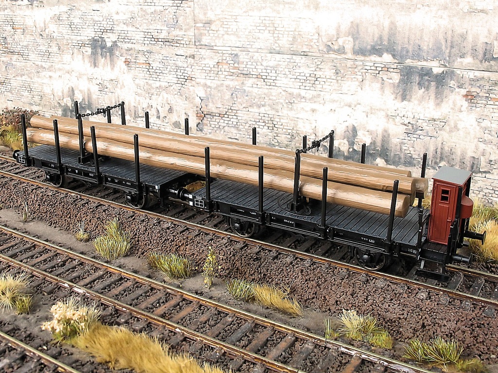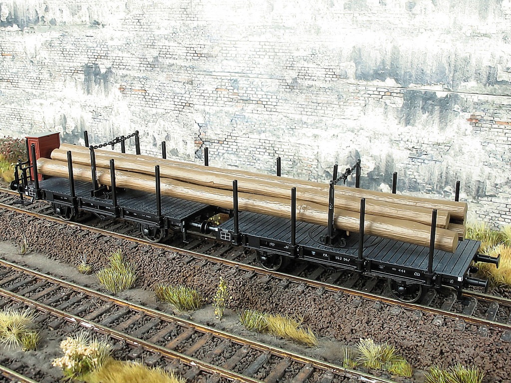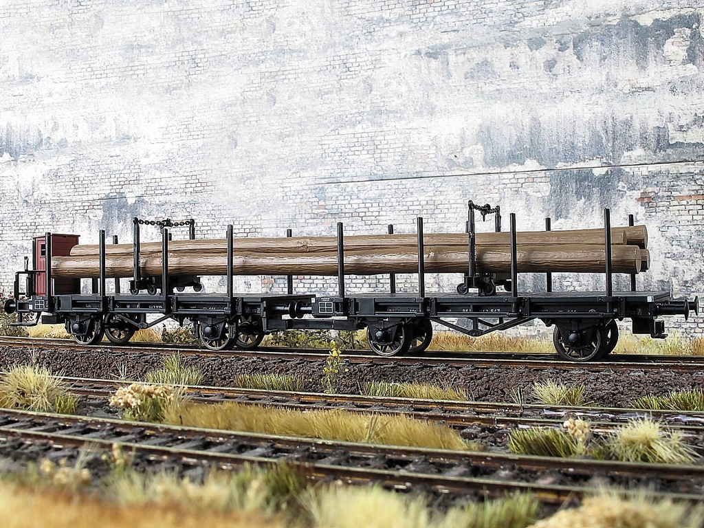 Zestaw platform Pdkth+Pdkt PKP z obracaną ławą do przewozu dłużycy .