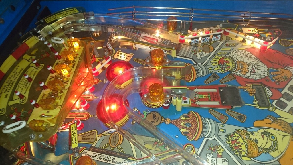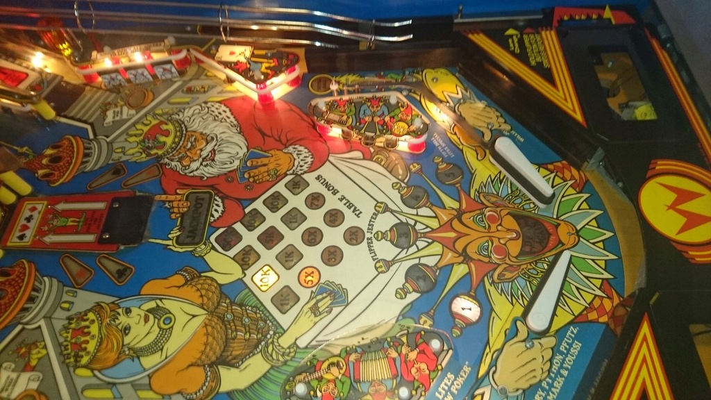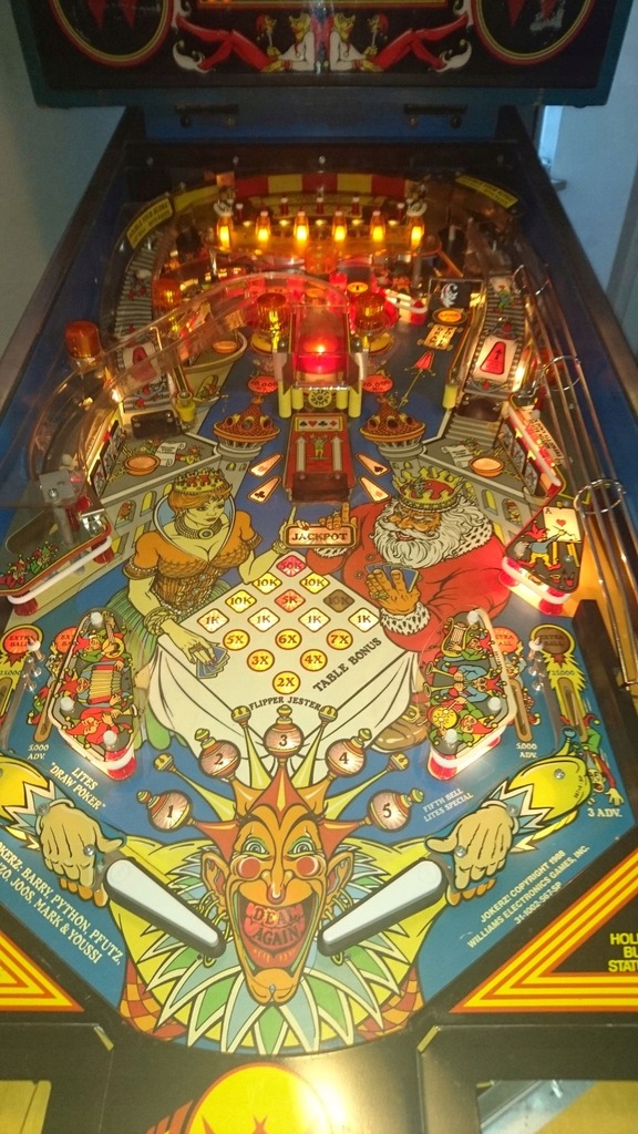 Sprzedam flipper firmy Williams z 1988 r. Flipper po przeglądzie elektro-mechanicznym w 100% sprawny. Blat pinballa został rozkręcony i wymyty z obu stron. Wymieniono łapki, kule oraz gumki na nowe. Uzupełniono oświetlenie. Wyeliminowano wszelkie usterki. Zainstalowano nowy, LEDOWY wyświetlacz. Automat suchy w środku, bez znaków korozji na metalach, zachowany w ładnym stanie. Nogi odmalowane proszkowo. Playfield w bardzo ładnym stanie, bez wytarć. Plastiki niepołamane. Silnik losujący karty w Backboxie sprawny. Flipper przygotowywany przez osobę zajmującą się tym na co dzień. Tel: 603091187. Zobacz moje inne aukcje.