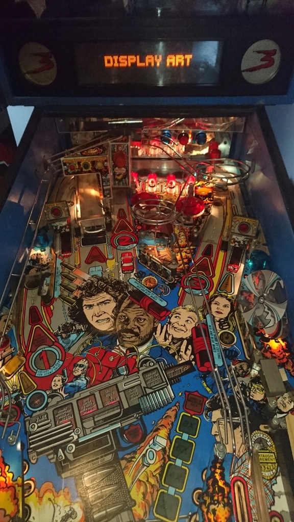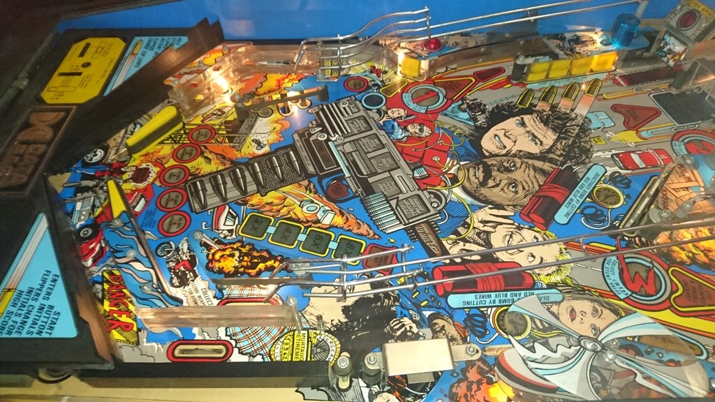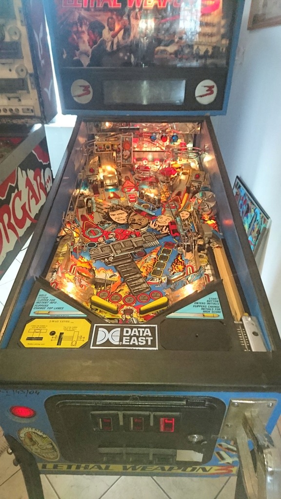 Sprzedam flipper LETHAL WEAPON 3 firmy DATA EAST. Automat zachowany w bardzo ładnym stanie. Pinball po renowacji blatu i przeglądzie elektroniczno-mechanicznym, w 100 % sprawny. Blat został rozkręcony i wymyty, zostały wymienione wszystkie gumki oraz żarówki na nowe. Zamontowano nowe łapki oraz dodano nowe kule. Wyświetlacz pracuje na nominalnym napięciu i wyświetla wszystkie piksele. Nogi zostały odmalowane proszkowo oraz dodano nowe, srebrne stopki regulujące. Pinball odnawiał fachowiec na co dzień zajmujący się naprawami flipperów. Tel: 603091187. Zobacz moje inne aukcje. W przygotowaniu ROAD SHOW, FUN HOUSE i HOOK.