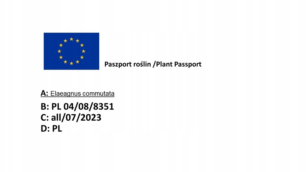 Oświadczam, ze zgodnie z Rozporządzeniem Parlamentu Europejskiego i Rady (UE) 2016/2031 z dnia 26 października 2016 r. w sprawie środków ochronnych przeciwko agrofagom roślin, zmieniającym rozporządzenia Parlamentu Europejskiego i Rady (UE) nr 228/2013, (UE) nr 652/2014 i (UE) nr 1143/2014 oraz uchylającym dyrektywy Rady 69/464/EWG, 74/647/EWG, 93/85/EWG, 98/57/WE, 2000/29/WE, 2006/91/WE i 2007/33/W do każdej jednostki handlowej dołączony jest paszport roślin.