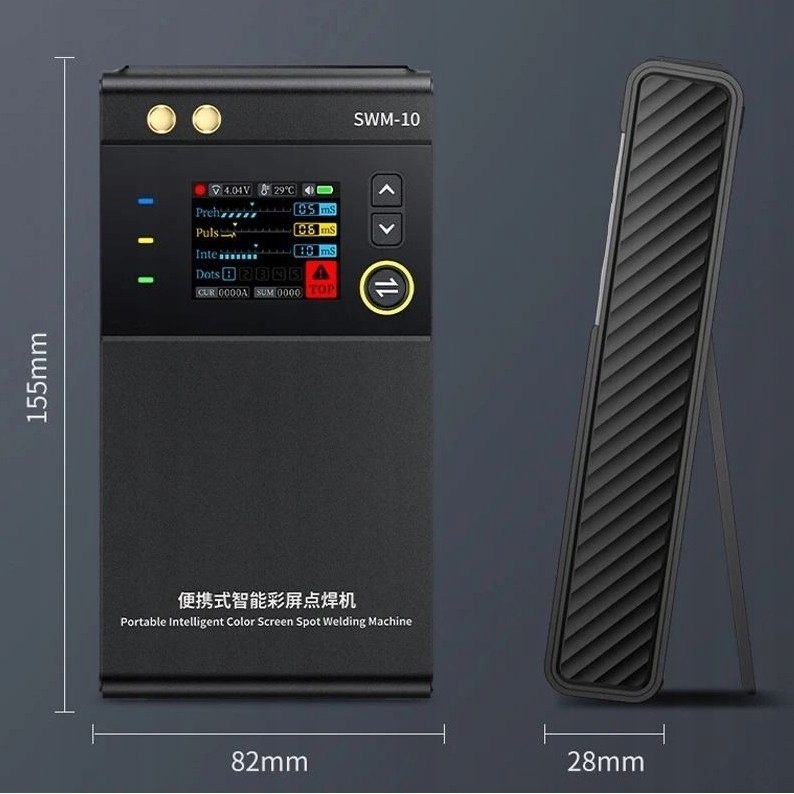 Ta spawarka punktowa ma konstrukcję z podwójnym impulsem, z kolorowym wyświetlaczem TFT o przekątnej 1,8 cala i funkcją regulacji wyjścia. Przyjmuje dwie baterie litowe o wysokiej wydajności 5000 mAh, o dużej mocy wyjściowej, może spawać blachę niklową / żelazną / stalową o grubości 0,1-0,25 mm itp. Spawanie jest solidne z pięknymi połączeniami spawalniczymi. Z wyjściem USB 0V 3.5A, może być używany do ładowania telefonów komórkowych i innych urządzeń USB. Nadaje się do spawania baterii do telefonów komórkowych, spawania okrągłych baterii, naprawy akumulatorów, montażu baterii i tak dalej.