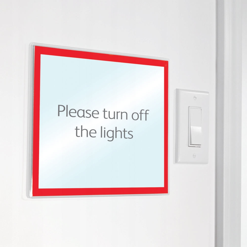 - Samoprzylepny tył umożliwia przyklejenie zalaminowanego arkusza w dowolnym miejscu.