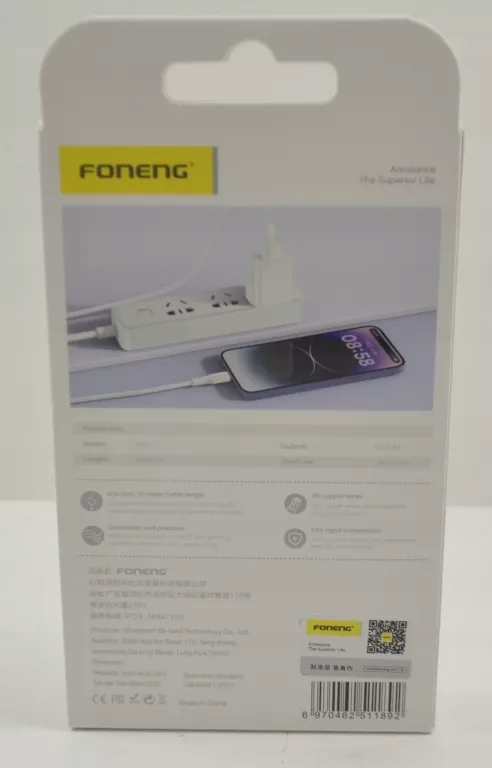 FONENG kabel XS01 Lightning 2.4A 1M Biały