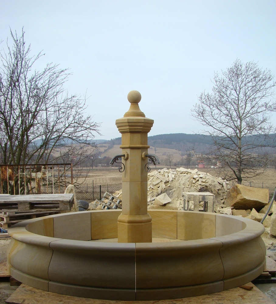 Oryginalna i stylowa fontanna z piaskowca, naturalny kamień -świetnie nadająca się do ogrodu, parku, na skwerek itp.