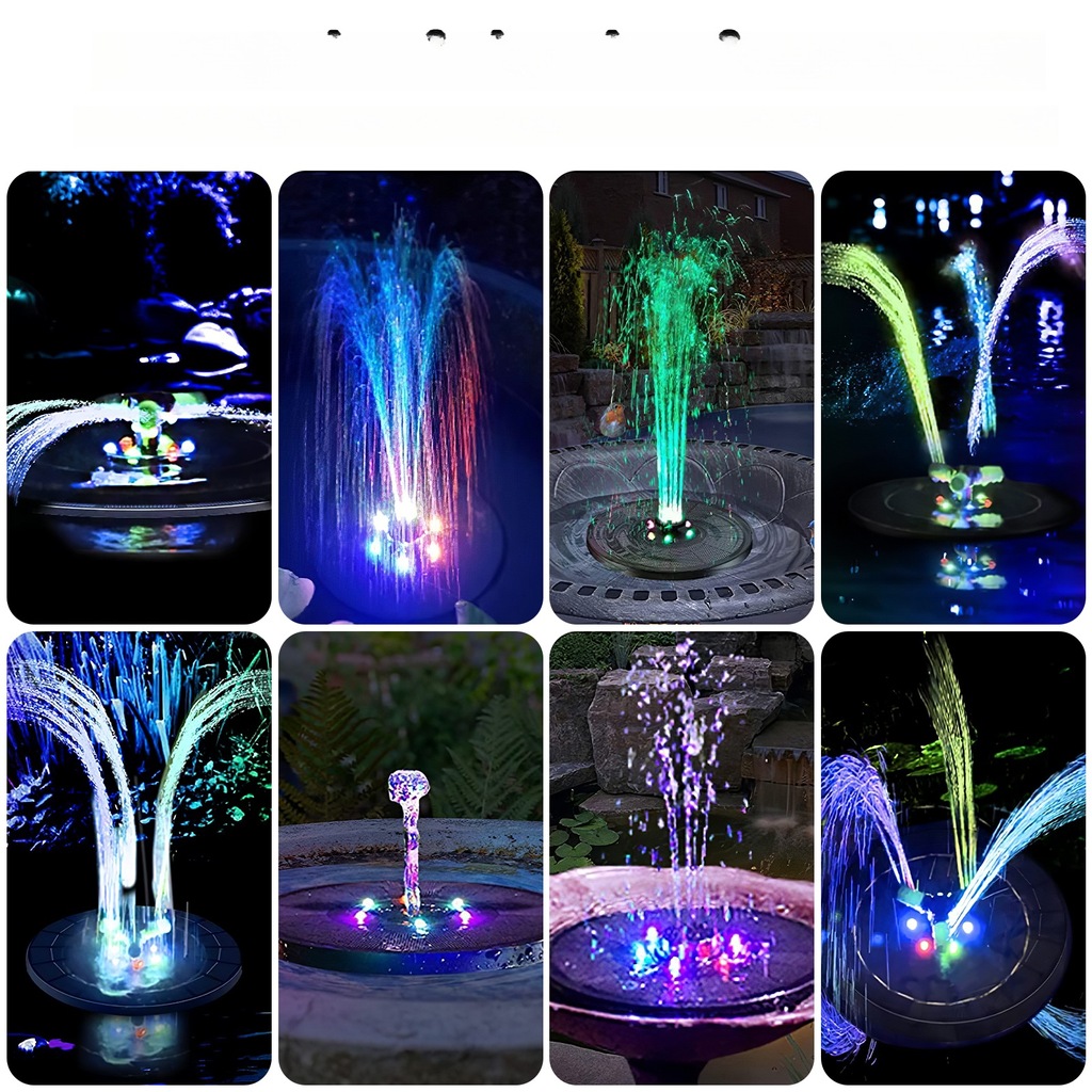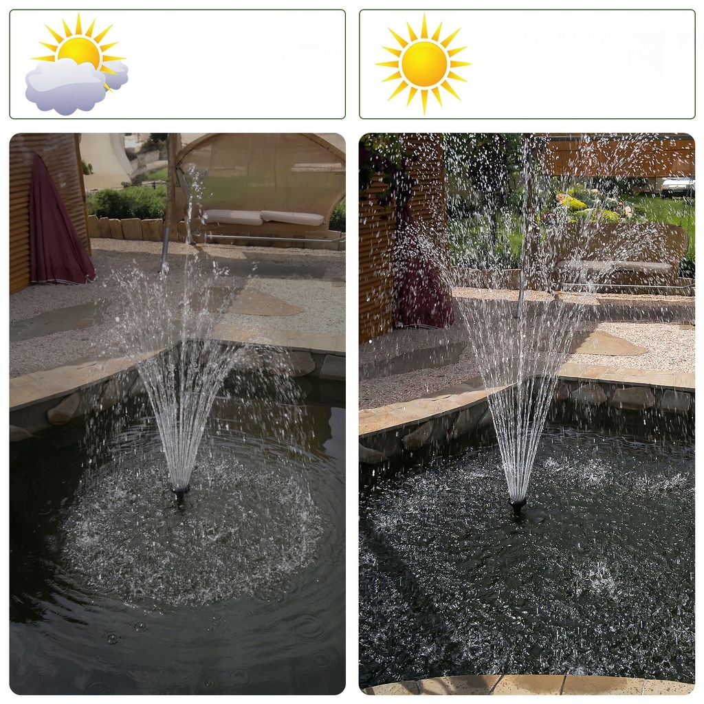 ✅Floating design: The solar fountain pump can float on the water surface, adding a beautiful touch to your garden or yard.