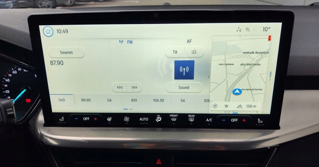 * System audio z SYNC4 , DAB+ i nawigacją satelitarną – kolorowy wyświetlacz dotykowy 13.2", bezprzewodowa obsługa Apple CarPlay i Android Auto (wymaga kompatybilnego telefonu), zestaw głośnomówiący z Bluetooth®, obsługa głosowa w języku polskim, 6 głośników, zdalne sterowanie na kierownicy