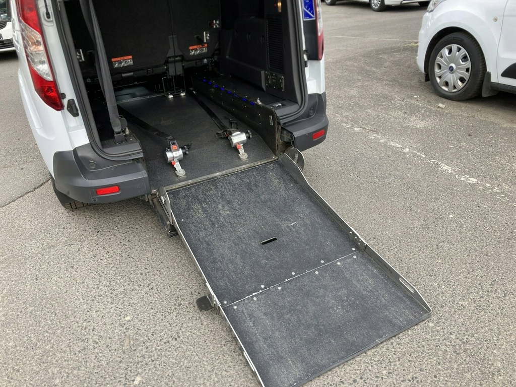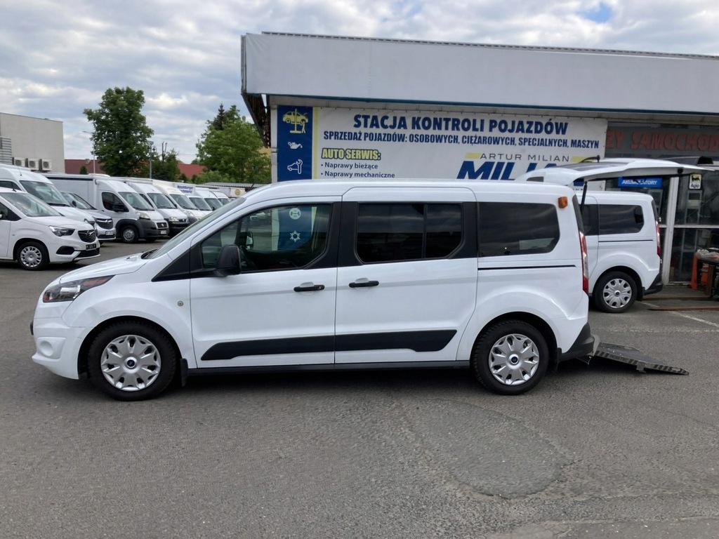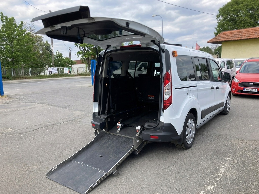 Ford Tourneo Connect z 2019 roku z automatyczną skrzynią biegów do przewozu osób niepełnosprawnych z tyłu.