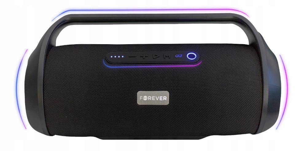 Boost od Forever stworzono na kształt kultowego boomboxa z lat 80. i 90. Obudowie nadano nowoczesnego szyku i elegancji. Głośnik jest odpowiednio duży, a komfortowy uchwyt ułatwia przenoszenie sprzętu z miejsca na miejsce. Niesamowite efekty wizualne zapewnia podskakujące w rytm muzyki podświetlenie LED. Nawet organizując imprezę w domu, poczujesz się jak w modnym klubie. Panel sterowania urządzeniem jest intuicyjny i prosty w obsłudze. Wskaźnik LED pokazuje aktualny poziom baterii, więc brak energii nigdy Cię nie zaskoczy.