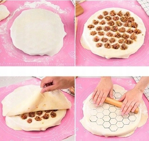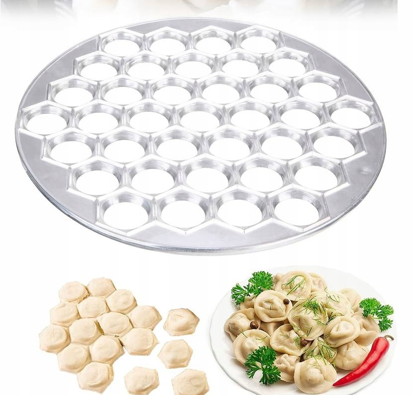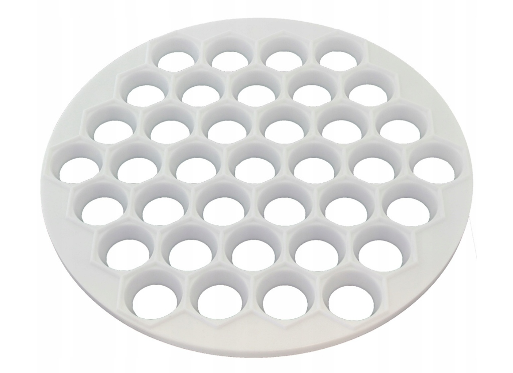 Dzięki 37 oczkom o średnicy 2,5 cm, forma zapewnia idealne i jednakowe pierogi oraz uszka za każdym razem.