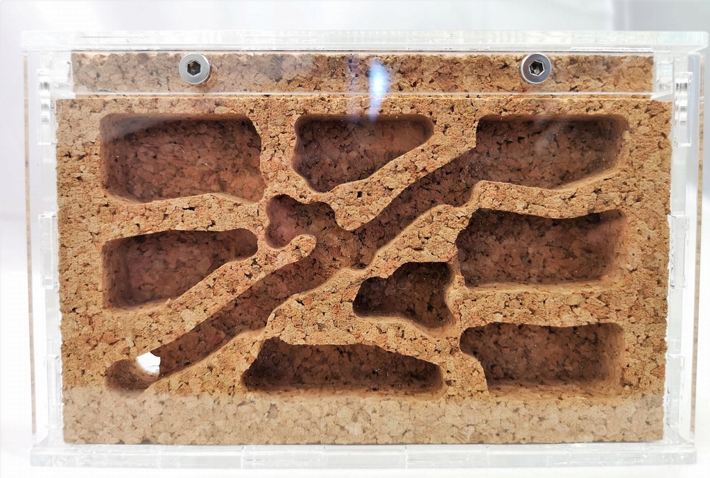 Komory w gnieździe zostały tak zaprojektowane by było możliwe wprowadzenie nawet małych koloni bez narażenia mrówek na stres spowodowany zbyt wielkim gniazdem z dostępem do wszystkich komór, gdzie mrówki mogą się pogubić i zrobić śmietnik. Przegrody zostawione między komorami po wyjęciu korka przed wprowadzeniem koloni można przeciąć by zwiększyć powierzchnię gniazda. Dzięki temu można dostosować wielkość powierzchni gniazda do wprowadzanej koloni, resztę komór mrówki same połączą jak będą miały ciasno.