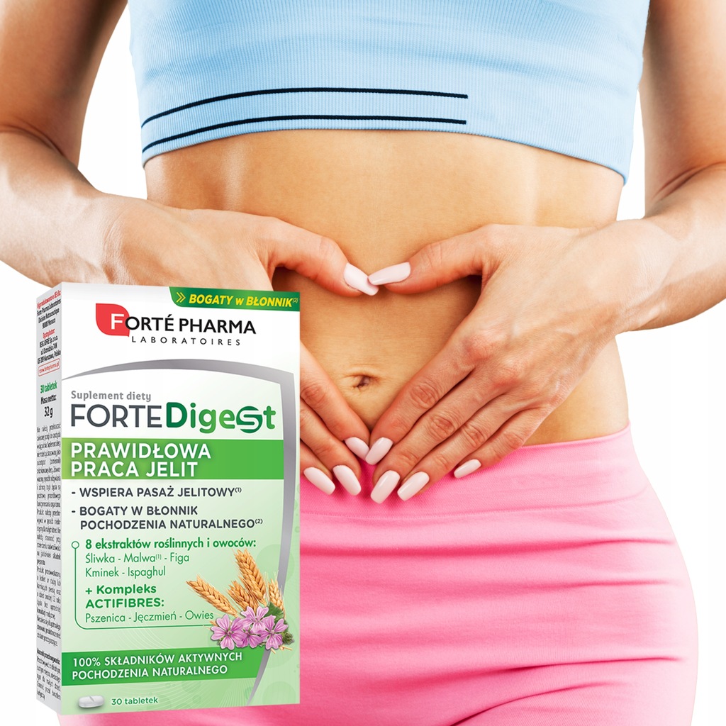 Forte Digest PRAWIDŁOWA PRACA JELIT suplement diety z unikalna formułą, która wspomaga pasaż jelitowy i wspiera lepszą wydajność jelit.