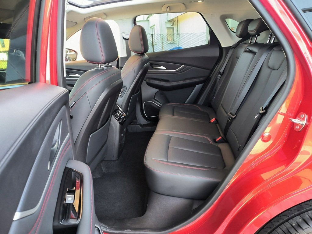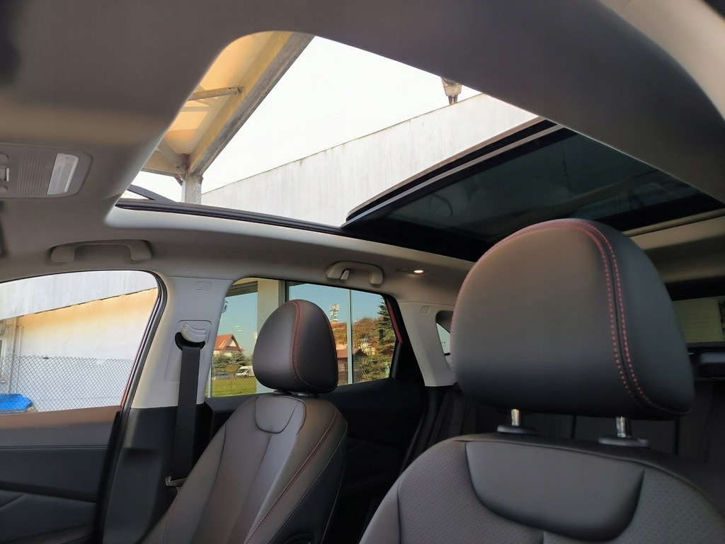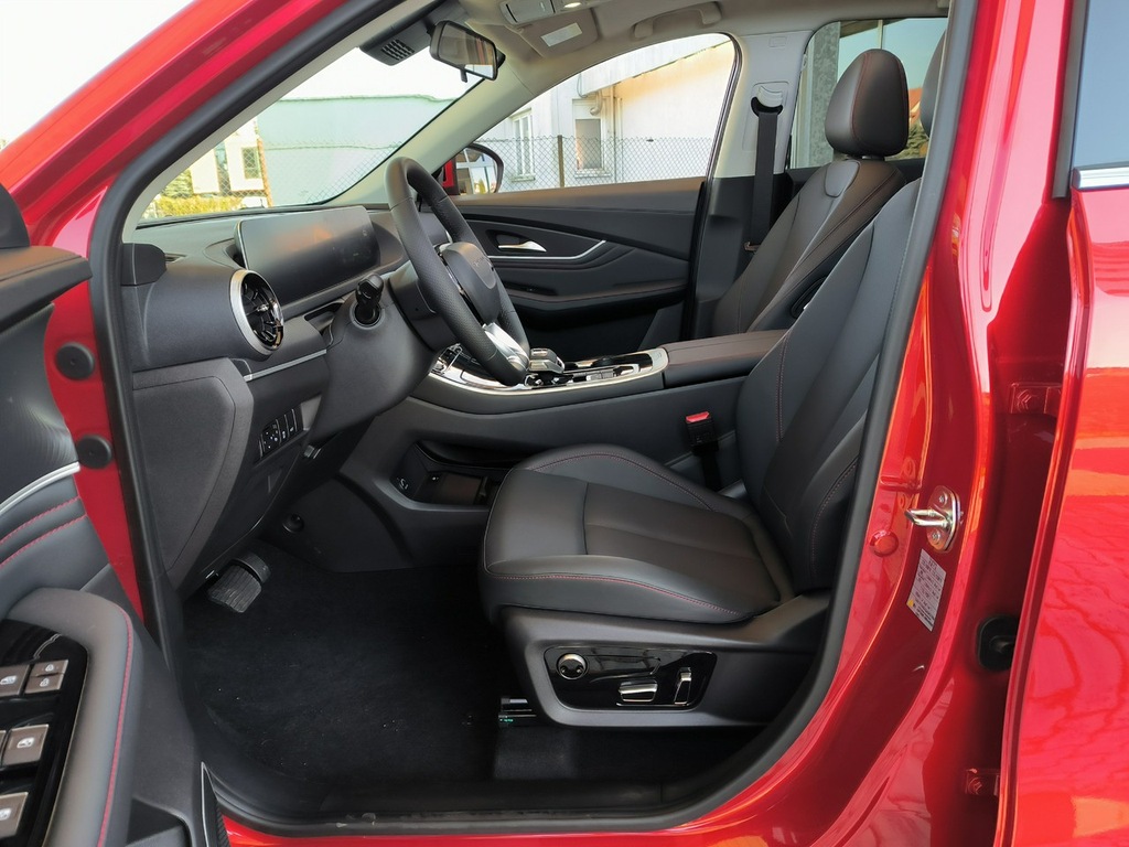 - Komfort i Przestronność: Ergonomiczne fotele pokryte wysokiej jakości ekologiczną skórą, elektrycznie regulowane i podgrzewane, zapewniają maksymalny komfort podczas długich podróży. Przestronne wnętrze z panoramicznym szyberdachem tworzy przyjemną atmosferę dla wszystkich pasażerów.