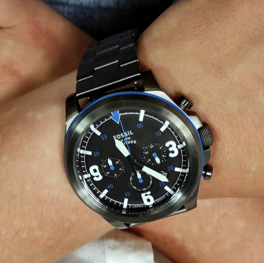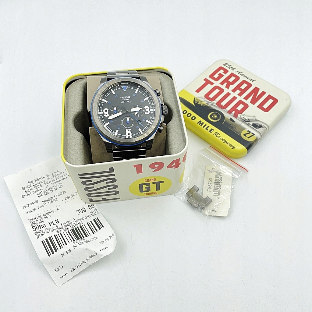 Model ten posiada dodatkowo funkcję chronografu, czyli analogowego stopera. Zegarek Fossil FS5753 działa na dokładnym mechanizmie kwarcowym, zasilanym za pomocą baterii, ukrytym pod stylową tarczą, której granatowy odcień perfekcyjnie komponuje się z całym designem tego modnego czasomierza. Oznaczenia godzin tworzą jasne indeksy i cyfry arabskie, dzięki którym zegarek FS5753 jest bardzo czytelny. Ten modny męski zegarek Fossil posiada wodoszczelność 10ATM-100m, pozwalającą na pływanie powierzchniowe, kąpiel pod natryskiem lub w wannie i zanurzenie, którą zapewnia zakręcane wieczko. Model FS5753 jest nie tylko stylowym dodatkiem, ale też dokładnym czasomierzem, który prócz wskazania aktualnej godziny posiada chronograf, czyli analogowy stoper oraz datownik. Cały design zegarka jest zgodny z najbardziej aktualnymi trendami i można go określić jako styl fashion.