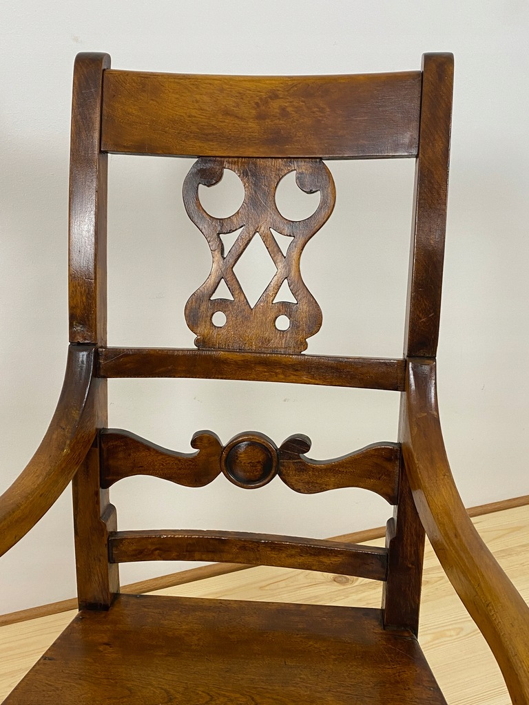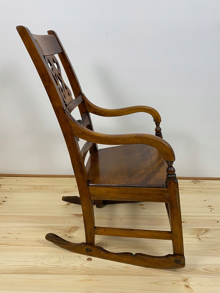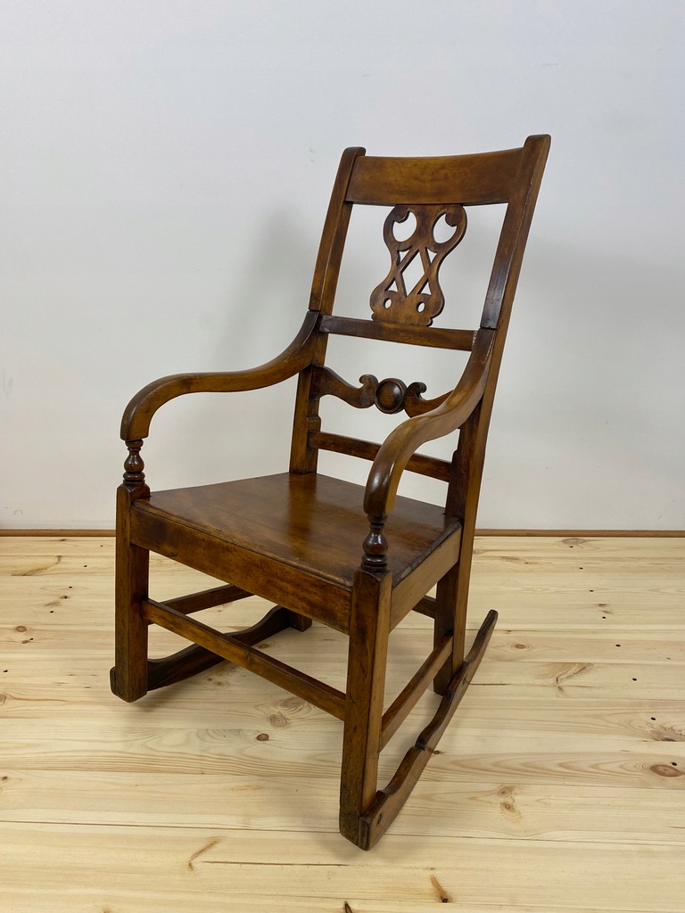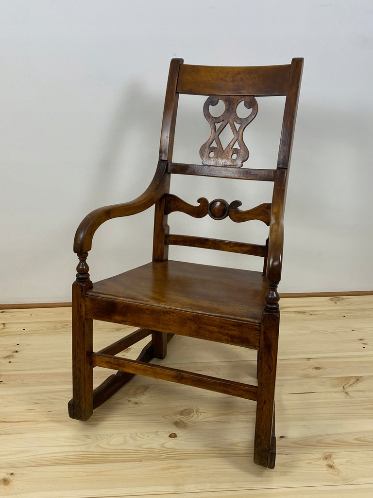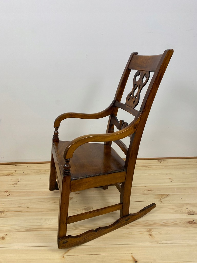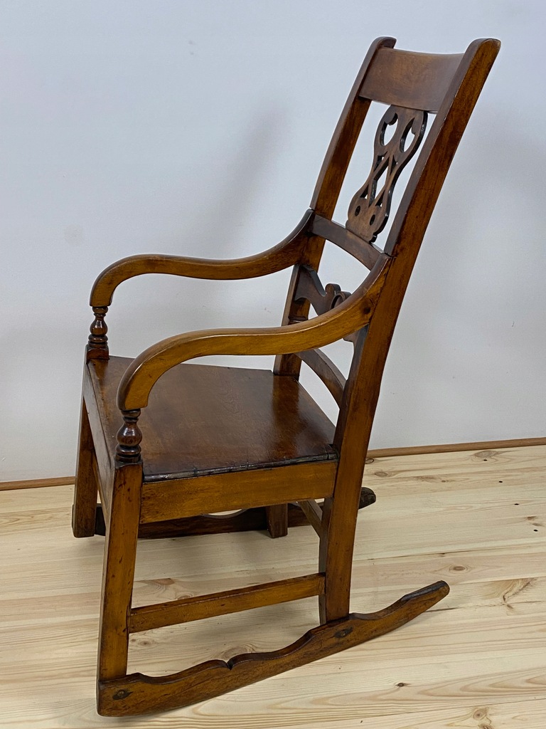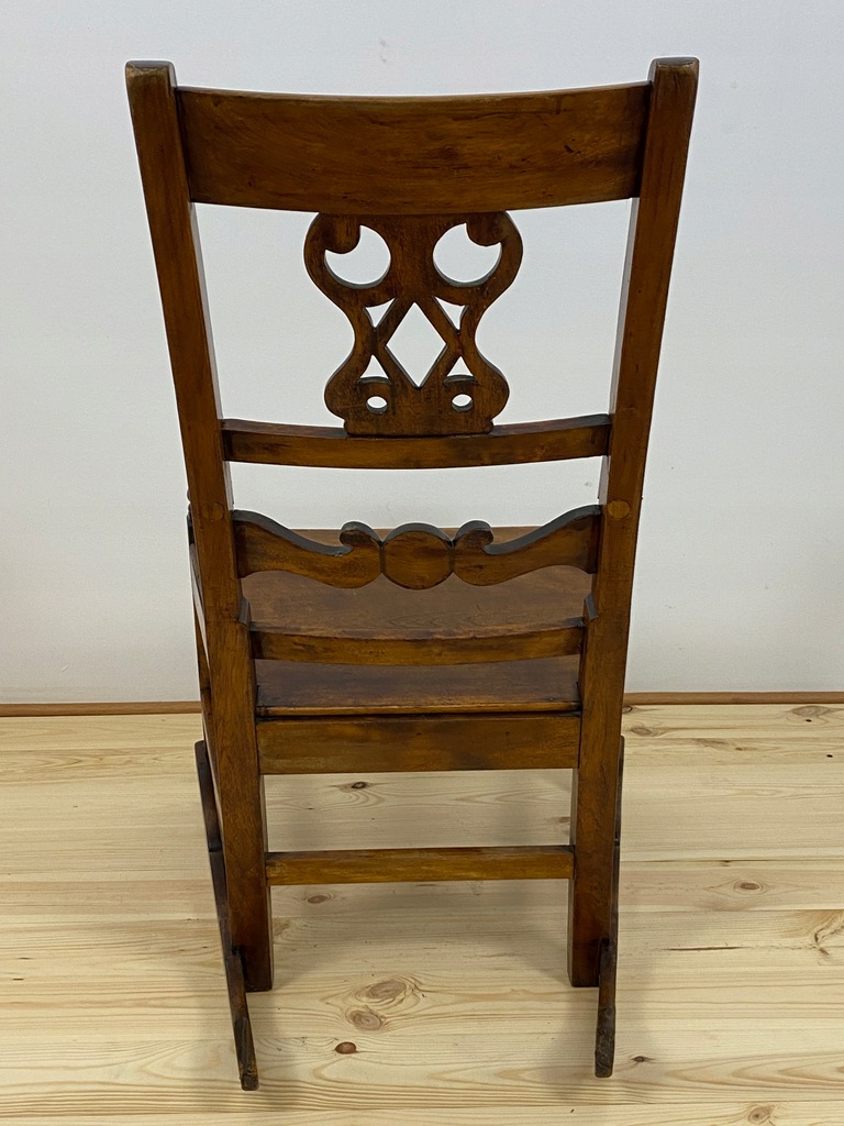 Oferujemy na sprzedaż XIX w fotel bujany , krzesło na biegunach. Oryginalny mebel w oryginalnym stanie , naturalne zużycie drewna , niewielkie ubytki drewna z tyłu płozy , otarcia i wgniecenia drewna. Mebel w świetnym stanie , gotowy do wystroju i użytku. Piękny i rzadki egzemplarz.