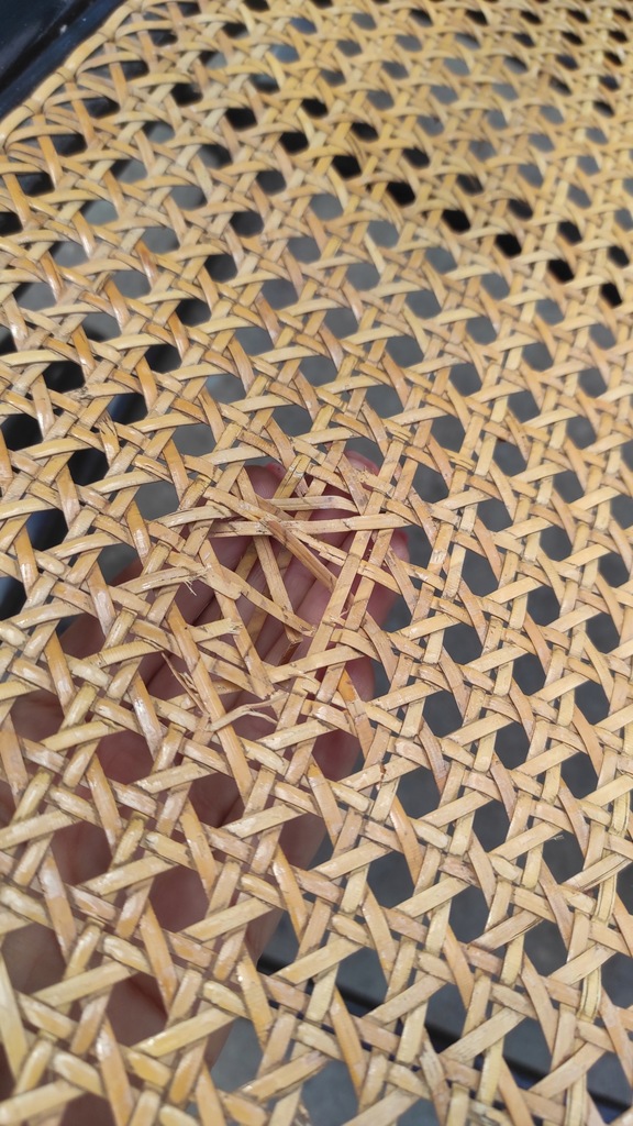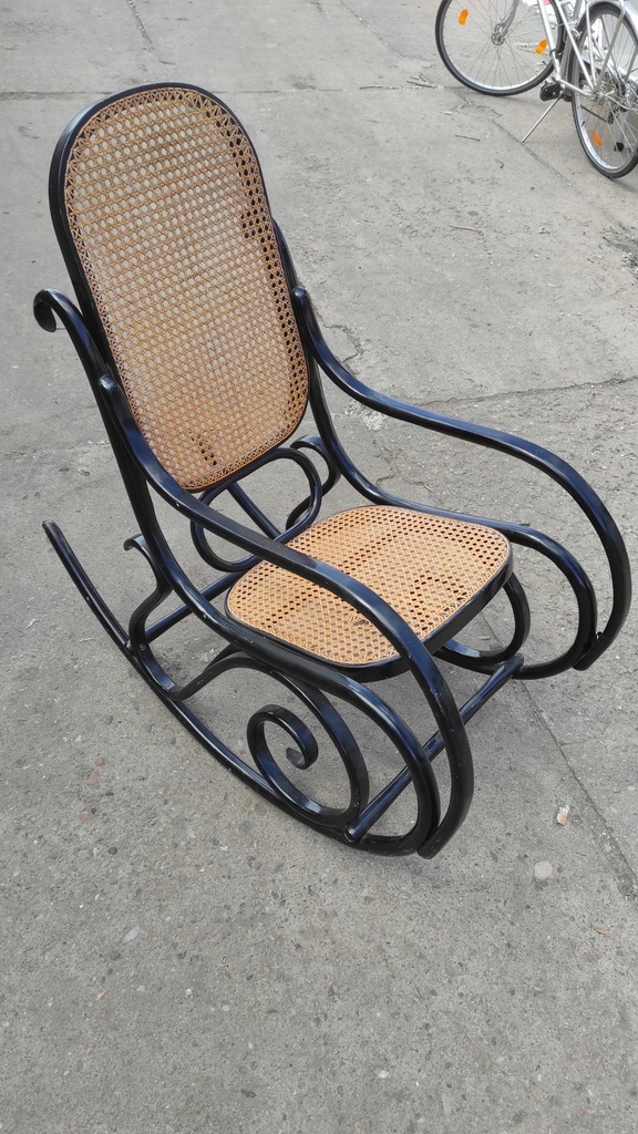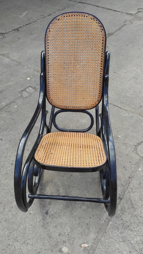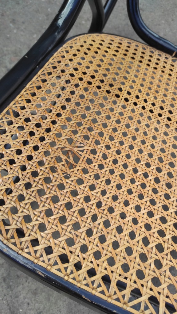 Wykonany z drewna, siedzisko z rattanu naturalnego.