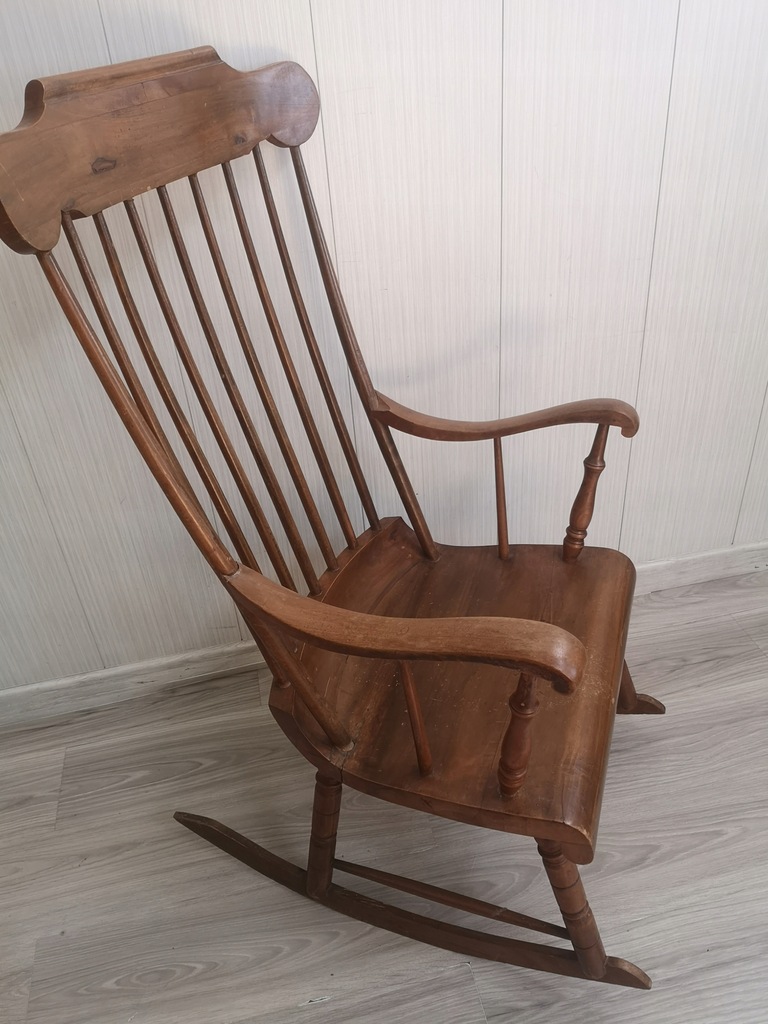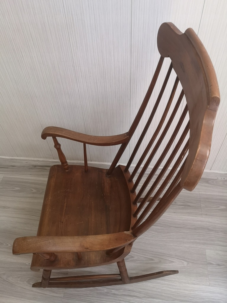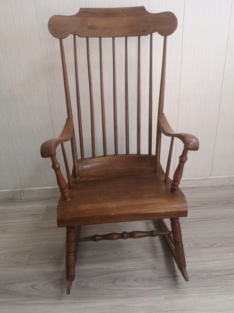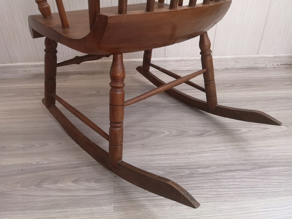 drewno w dobrym stanie, zadrapania, ryski, ubytek na podłokietniku w miejscu łączenia z oparciem ale bez wpływu na stabilność,