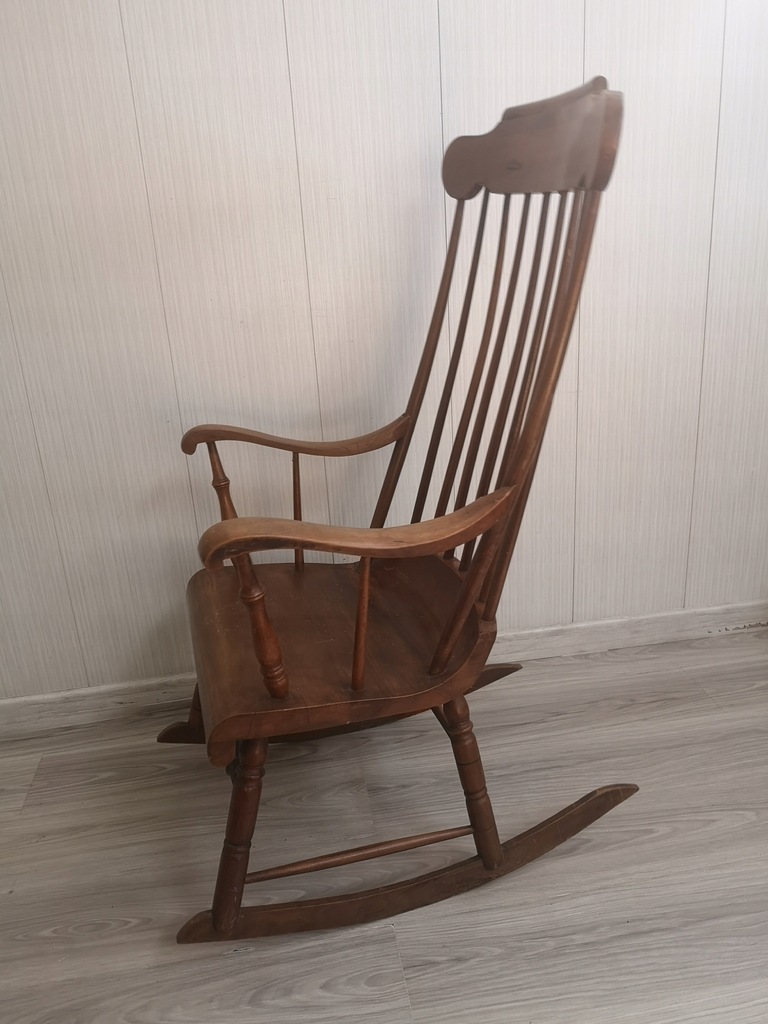 fotel bujany widać po siedzisku, że bardzo stary, drewno najprawdopodobniej tekowe, stabilny