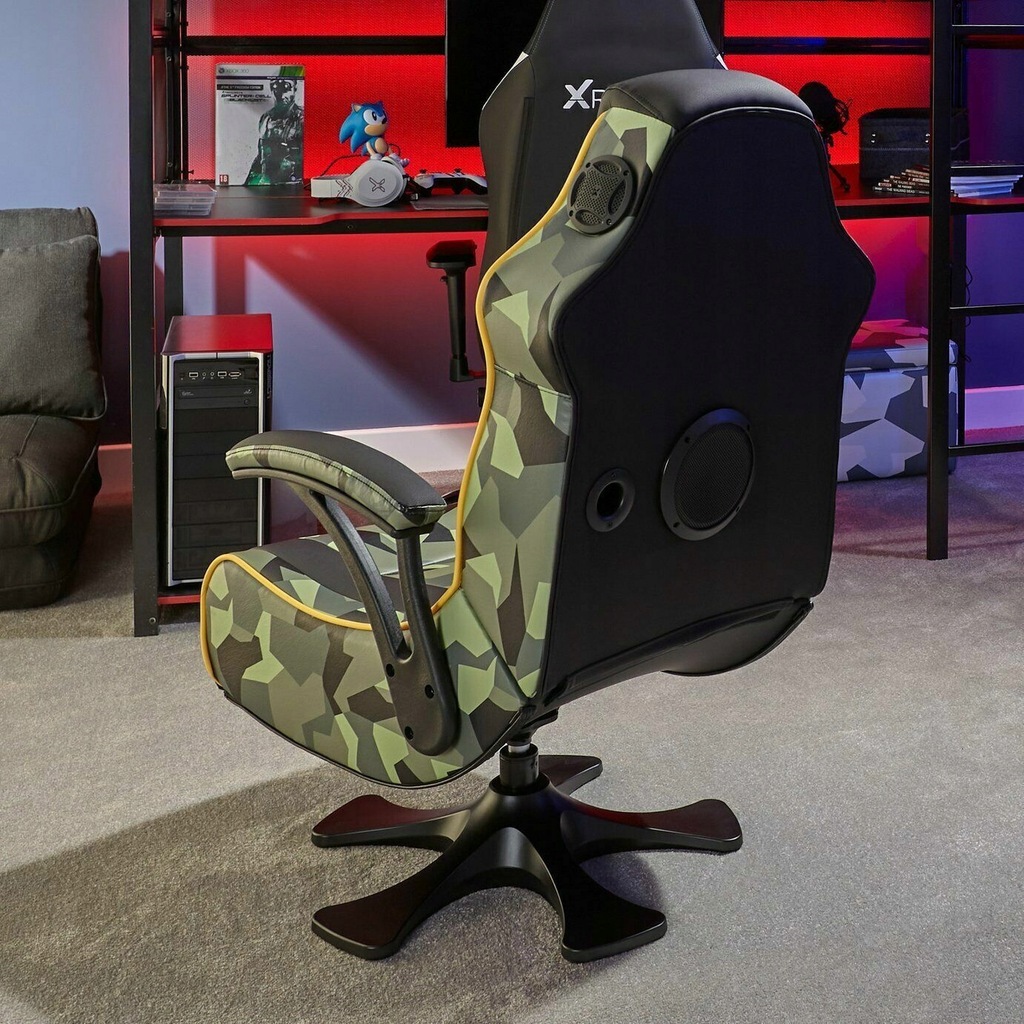 Fotel Gamingowy audio X-Rocker Covert Dark Ops 2.1 z bezprzewodowymi głośnikami stereo i subwooferem Bluetooth, wibracjami reagującymi na dźwięk.