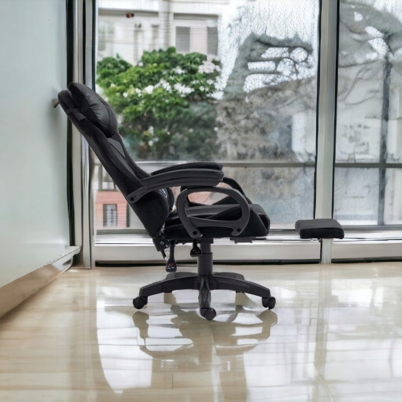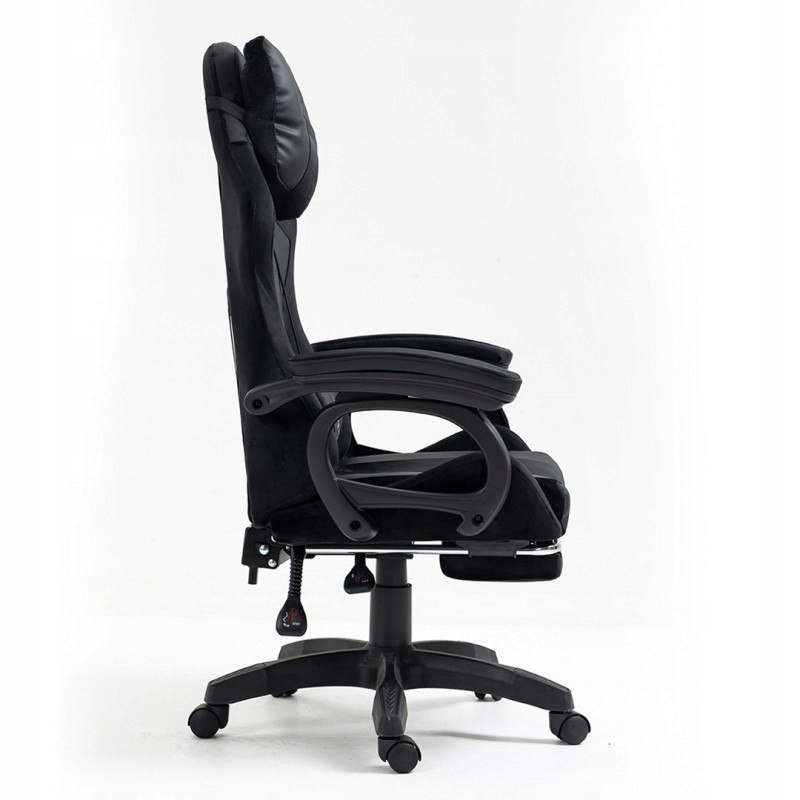 Specyfikacja fotela gamingoweCZARNYmaksymalne obciążenie 150 kgeko skóra + welur, w środku zastosowana wysokiej jakości pianka EPEkółka plastikowecałkowita wysokość fotela 116-123 cm (bez problemu dla osoby o wzroście do 183 cm)całkowita szerokość 61 cmwaga 14,8 kgkomplet dwóch poduszek w zestawieCechy:siedzisko, wypełnione miękką podwójną gąbkąoparcie, zagłówek powleczone ekoskórą oraz weluremregulacja kąta odchylenia oparcia wraz z blokadapodłokietniki pokryte gąbką oraz ekoskórastabilna i wytrzymała pięcioramienna podstawawysokiej jakości kółkakolor: CZARNYZdjęcia poniżej przedstawiają rzeczywisty produkt.REGULACJA - fotel posiada regulacje wysokości siedziska. Dzięki temu możesz dostosować jego wysokość do swoich indywidualnych potrzeb co jest niewątpliwą zaletą. Możliwość regulacji odchylenia fotela, (90 -155 stopni) gwarantuje Ci chwilę relaksu i rozluźnienia.Pokrycie - szerokie siedzisko, oparcie, zagłówek oraz wierzchnia strona podłokietników powleczone wysokiej jakości ekoskóra, oraz zastosowanie pianki EPE.Wymiary kartonu z krzesłem: 80 x 25 x 59 cm, waga wraz z opakowaniem 15,5 kg