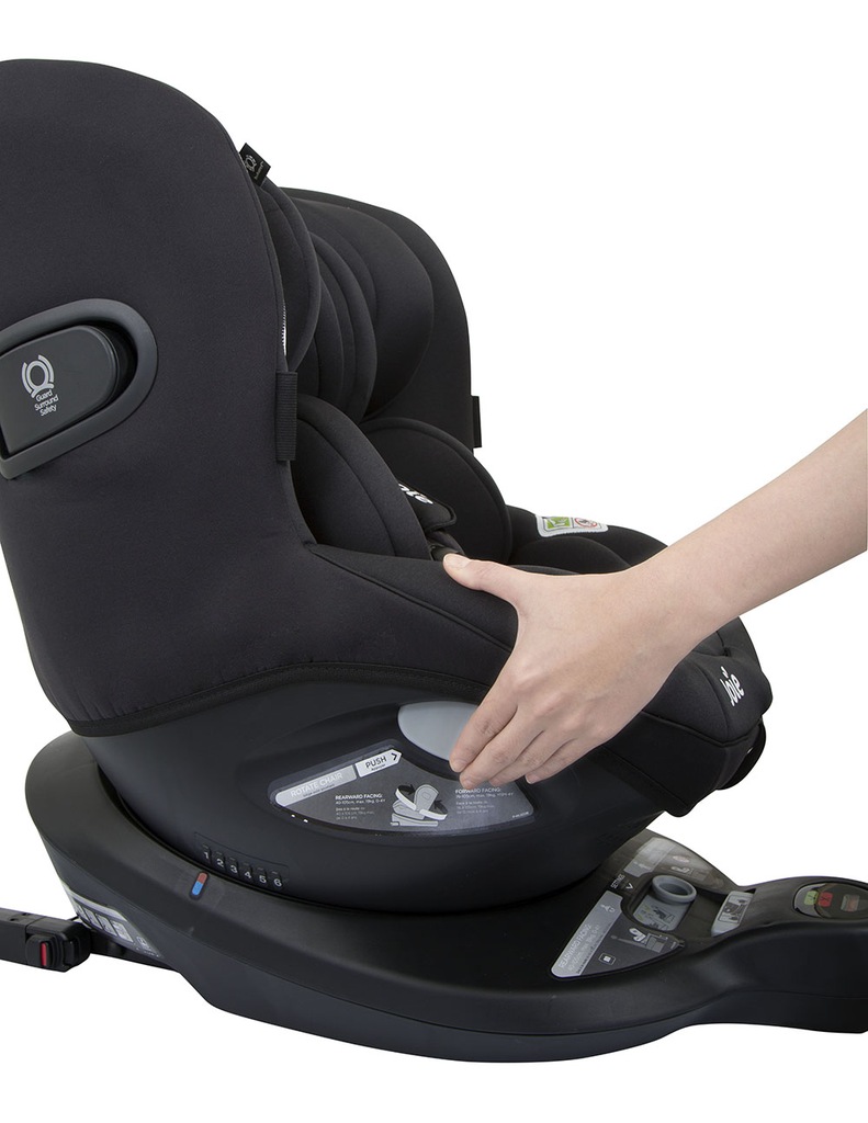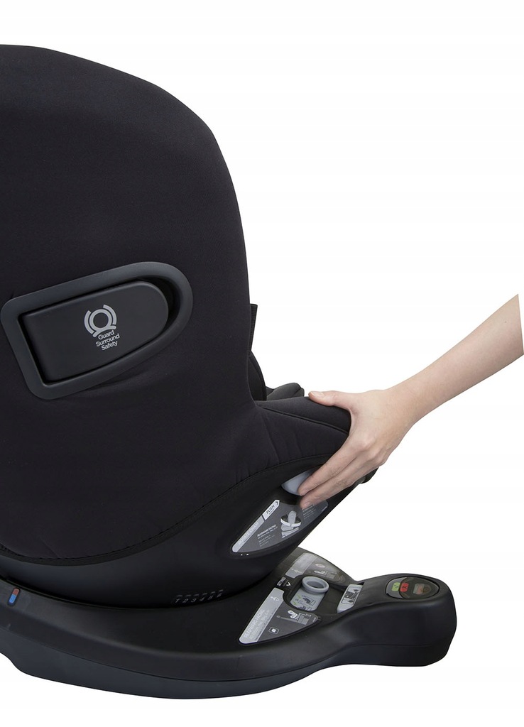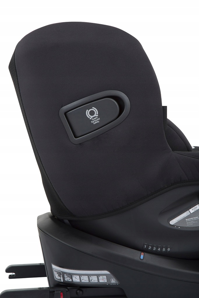 Fotelik samochodowy z możliwością obrotu o 360° w standardzie i-Size z dodatkowymi panelami bocznymi Guard Surround Safety™, blokadą Smart Ride™ oraz wysoką, łączną notą (1,8 pkt) w najnowszych testach zderzeniowych ADAC (Jesień 2019).