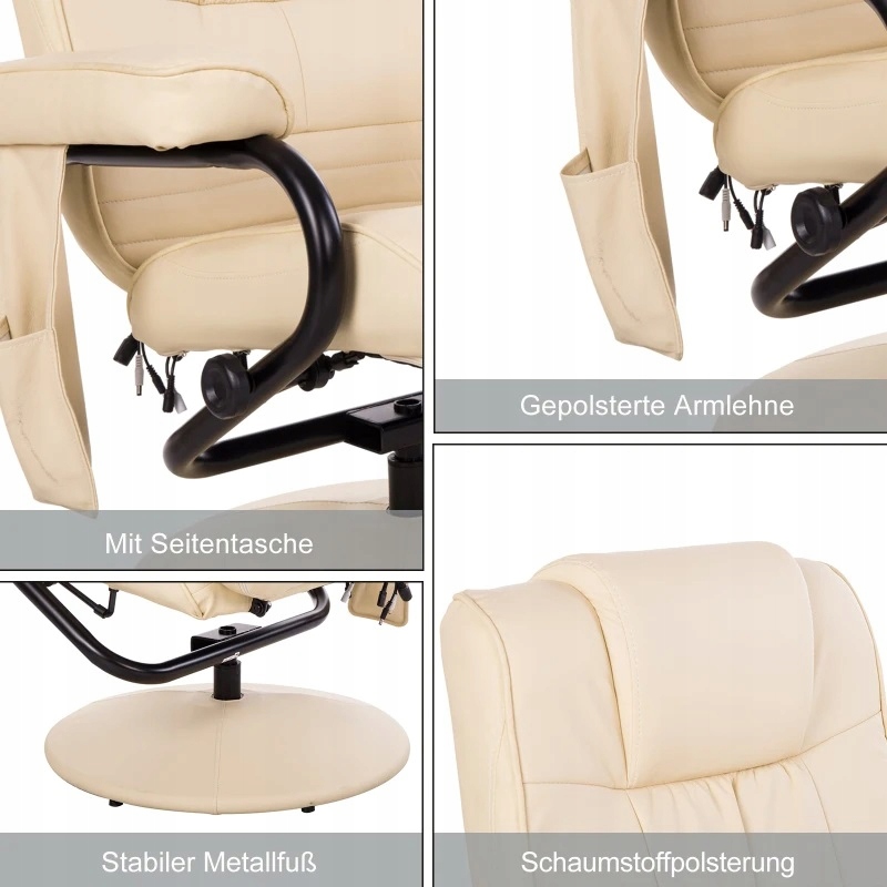 • 10 różnych punktów masowania, 6 na plecach, 2 w siedzeniu i 2 w taborecie