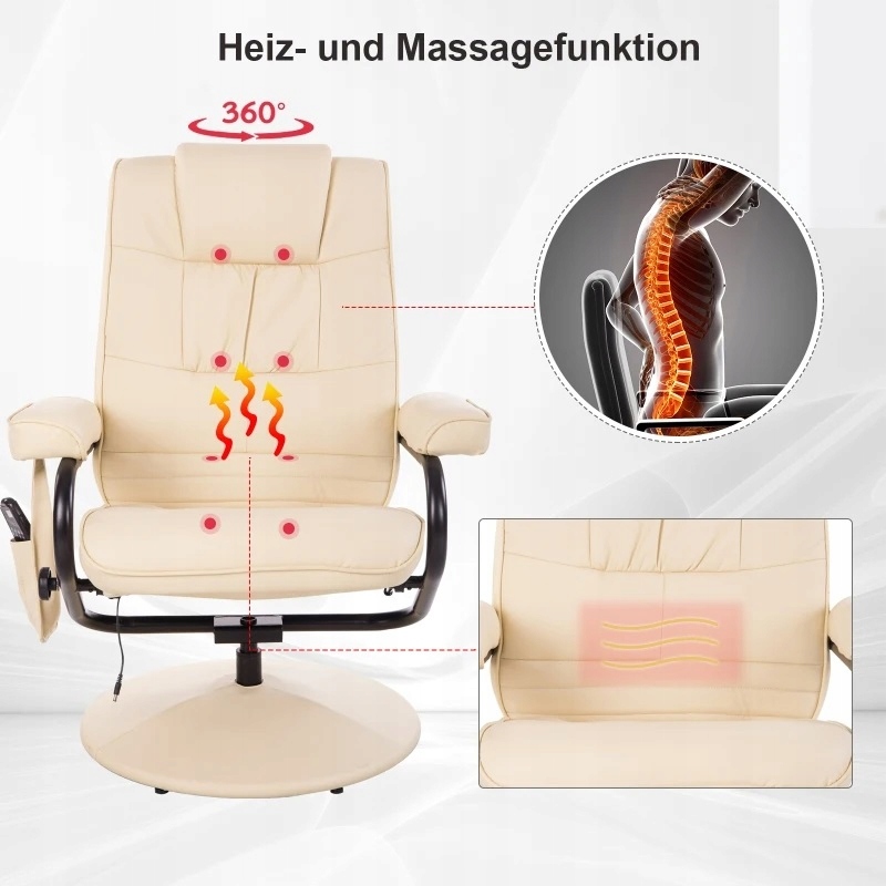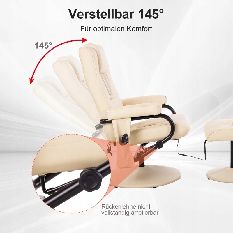 My wiemy jak ważny jest odpoczynek, dlatego stworzyliśmy ten fotel z myślą o Państwa wygodzie! Fotel łączy w sobie trwałość i maksymalną wygodę, ponadto został wyposażony w masaż za pomocą wibracji. Nasz fotel masujący świetnie dopasowuje się do ciała, co sprawia, że nie będziecie Państwo odczuwali bólu pleców, karku czy szyi. Dodatkowo w zestawie znajduje się taboret, który może służyć jako podnóżek. Oprócz funkcji masażu, fotel posiada także funkcję ogrzewania co pozwoli Państwu zniwelować codzienny stres.